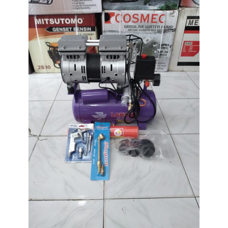kompresor lakoni basic 9 silent+ airduster+pentil angin+selang recoil 6m+Coupler SF PF