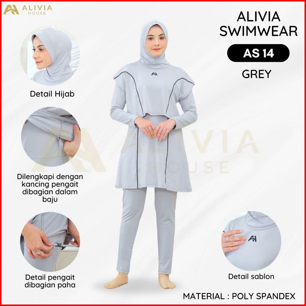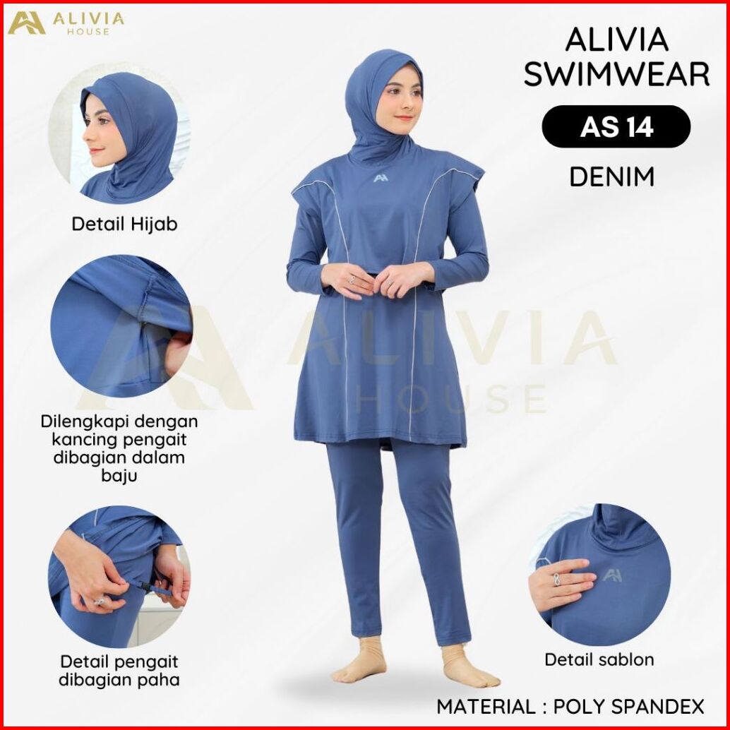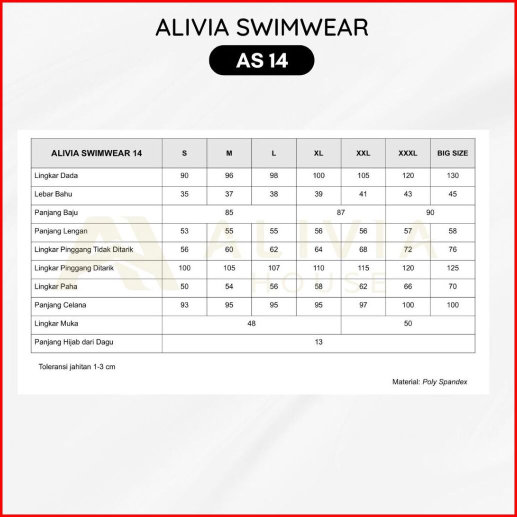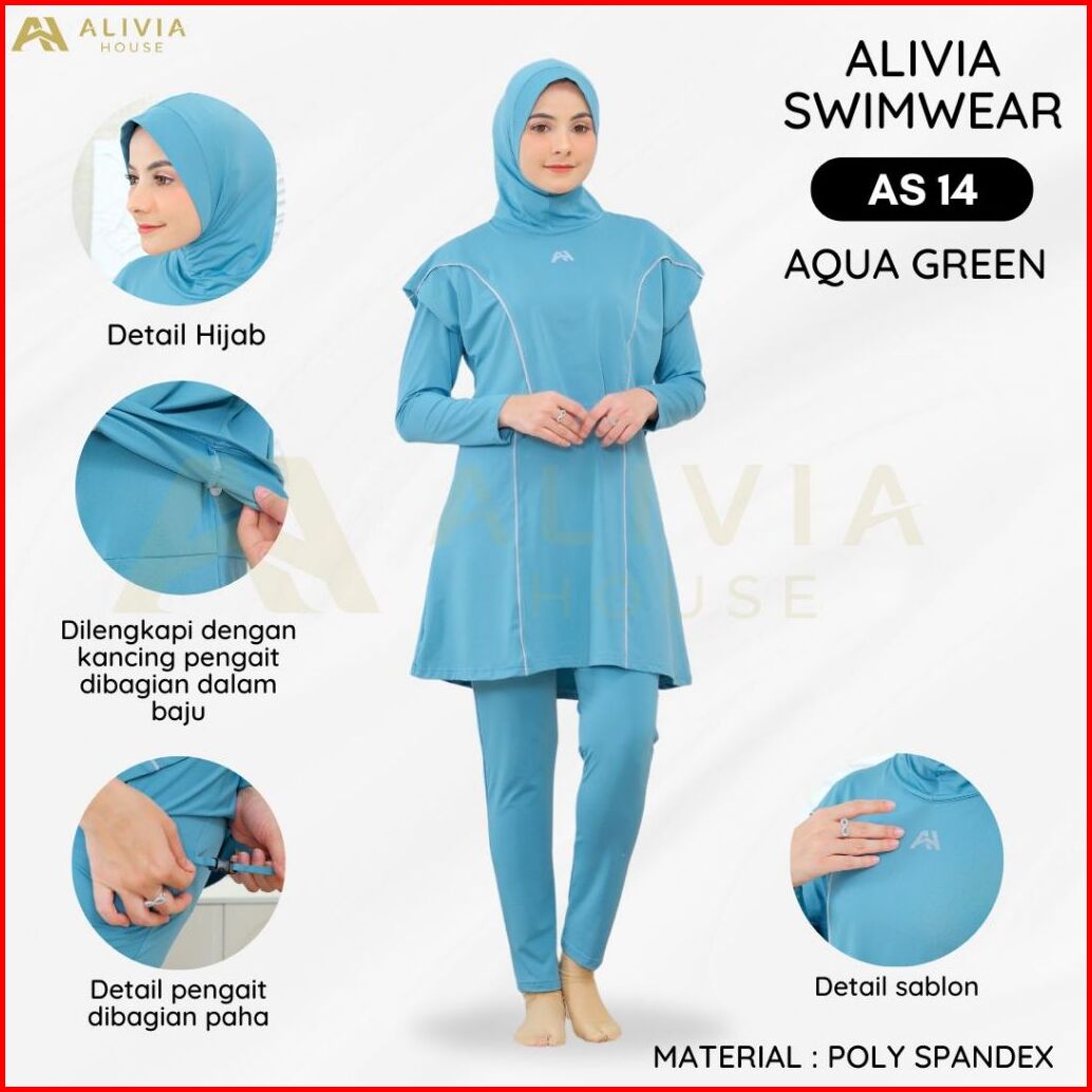 Alivia House - Alivia Swimwear As14 Baju Renang Muslimah Syari Poly Spandex Dewasa Wanita Muslim Perempuan Remaja Swimwe