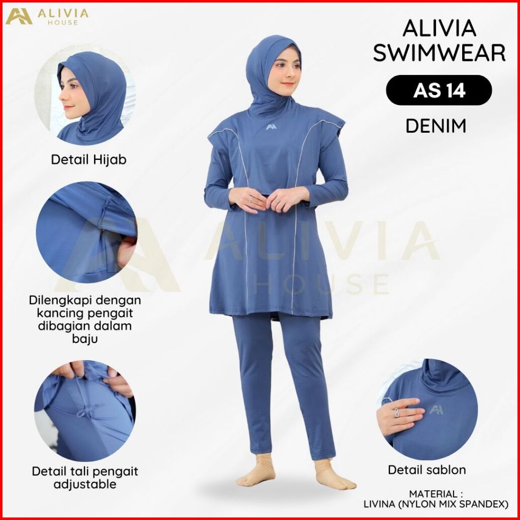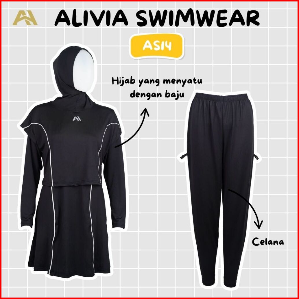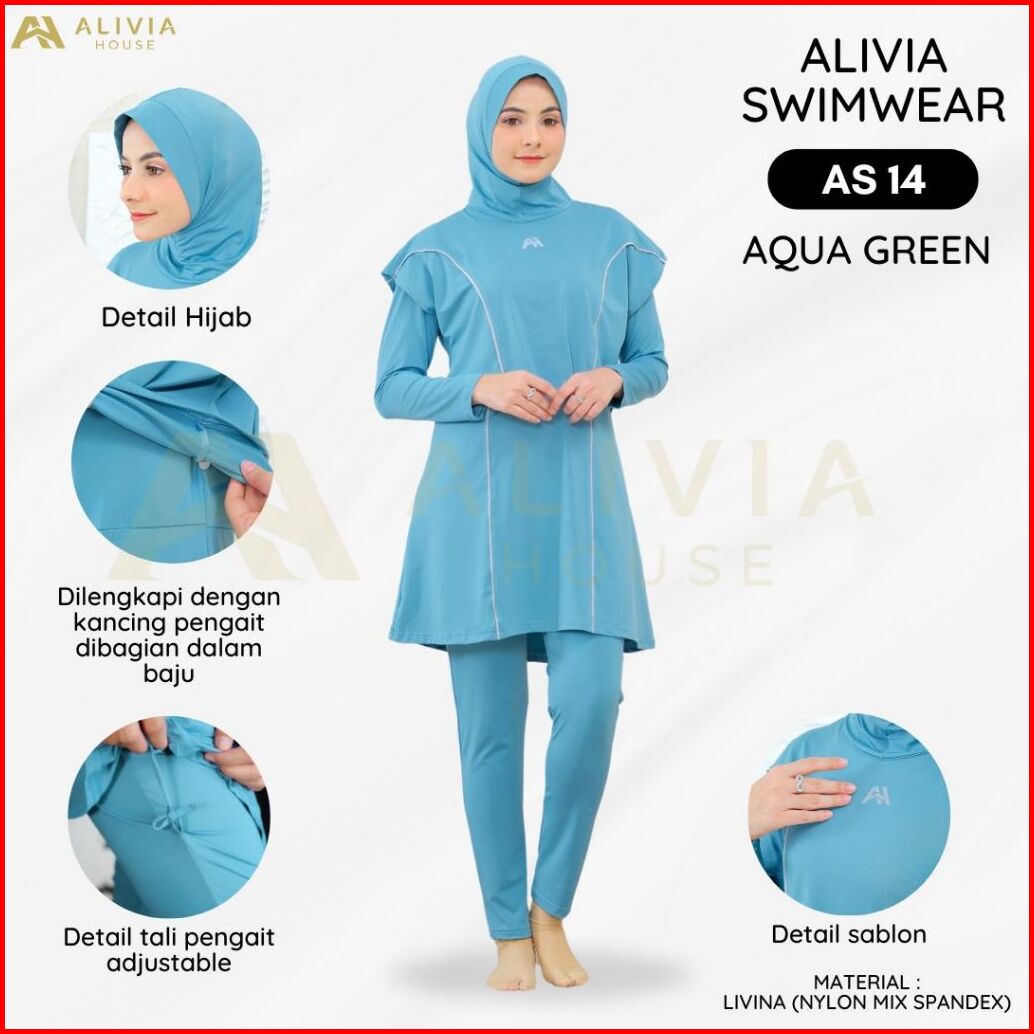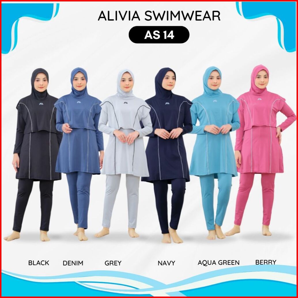 Alivia House - Alivia Swimwear As14 Baju Renang Muslimah Syari Poly Spandex Dewasa Wanita Muslim Perempuan Remaja Swimwe