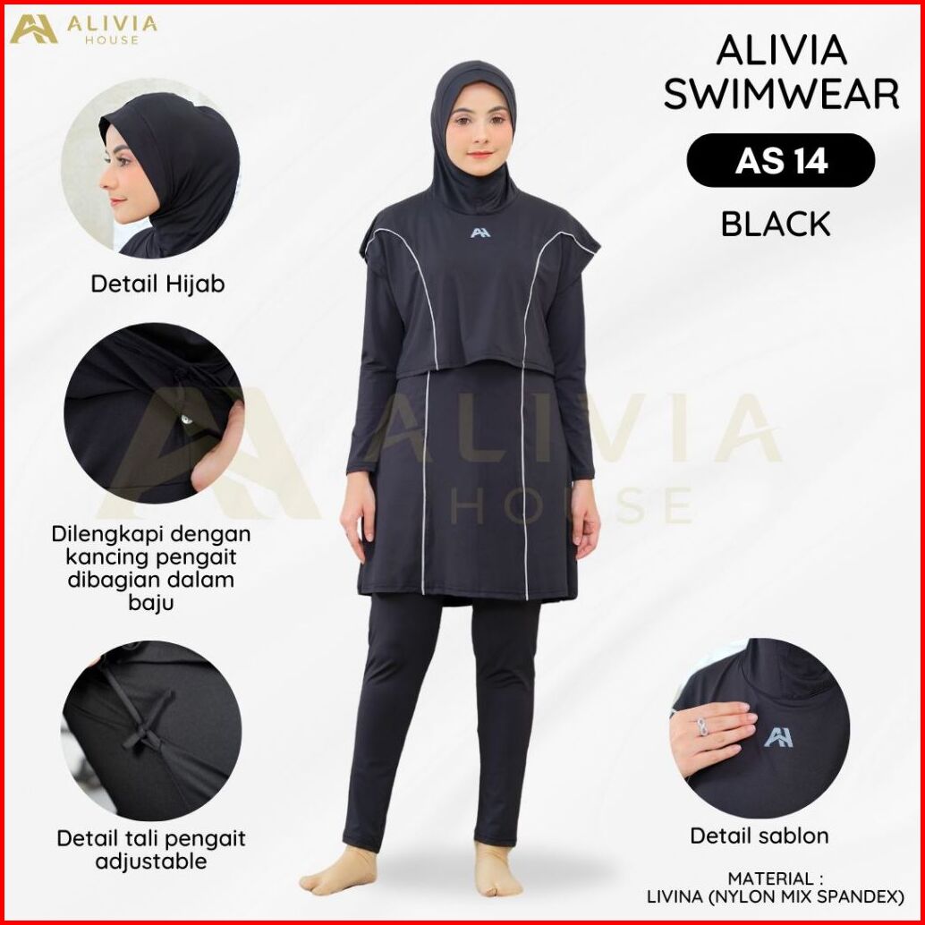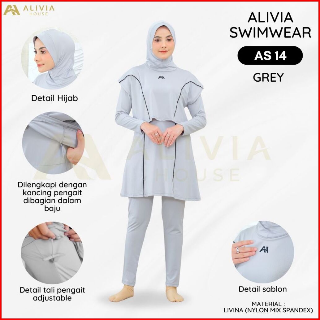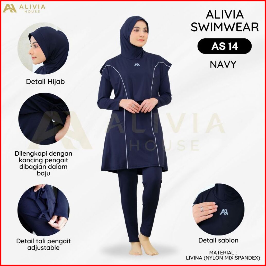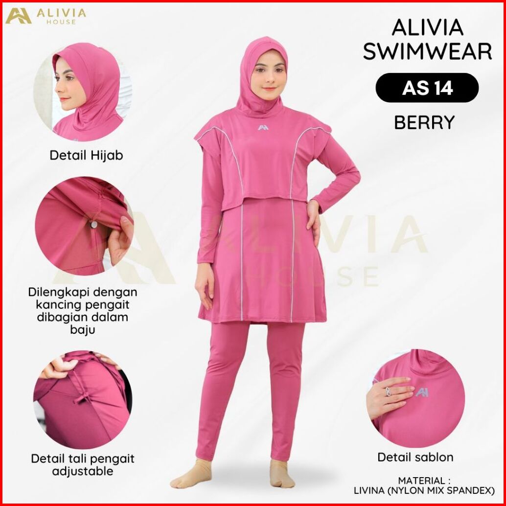 Alivia House - Alivia Swimwear As14 Baju Renang Muslimah Syari Poly Spandex Dewasa Wanita Muslim Perempuan Remaja Swimwe