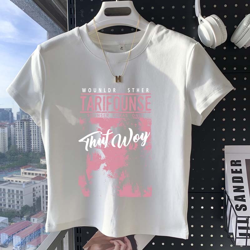 Peach Fashion Korean style trendy pink graffiti letter printT-Shirt Crop Top Lengan Pendek Kaos Wanita Crop Top Crop Wan
