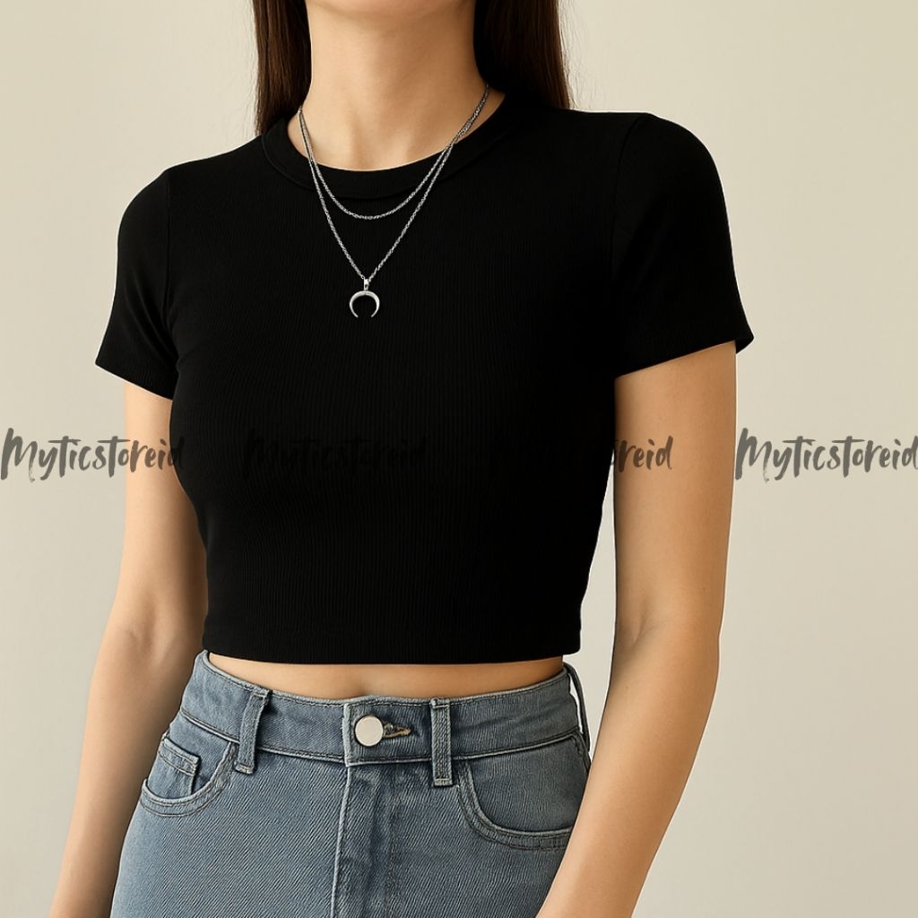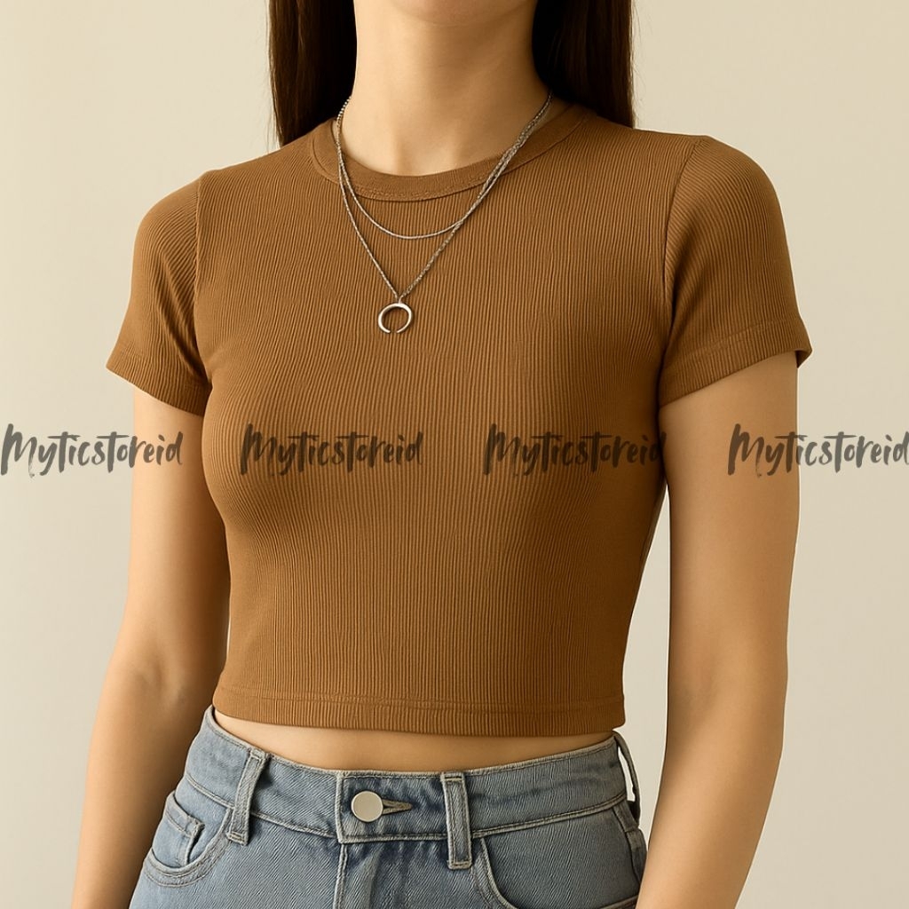 Moskov Top - Atasan Wanita Crop Korea Top Baju Knit Wanita Lengan Pendek - Kaos Knit Wanita - Atasan Crop Wanita Ribbed