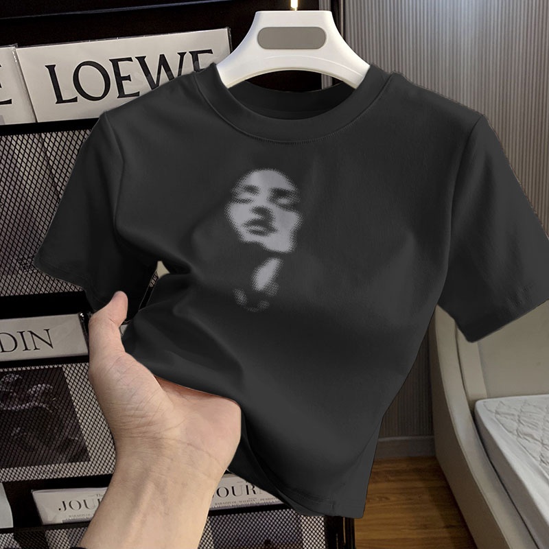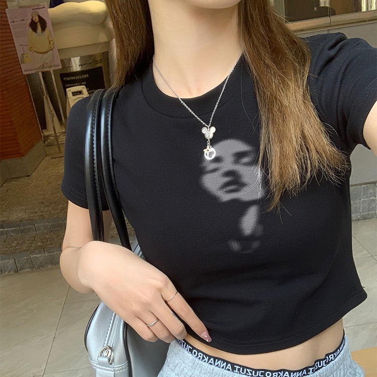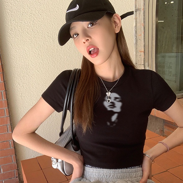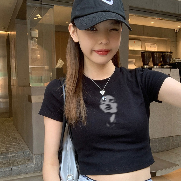 Misco T-shirt Crop Top Lengan Pendek Kaos Wanita Crop Top Korea Simple Facial Expressions Kaos Crop Wanita Kekinian Baju