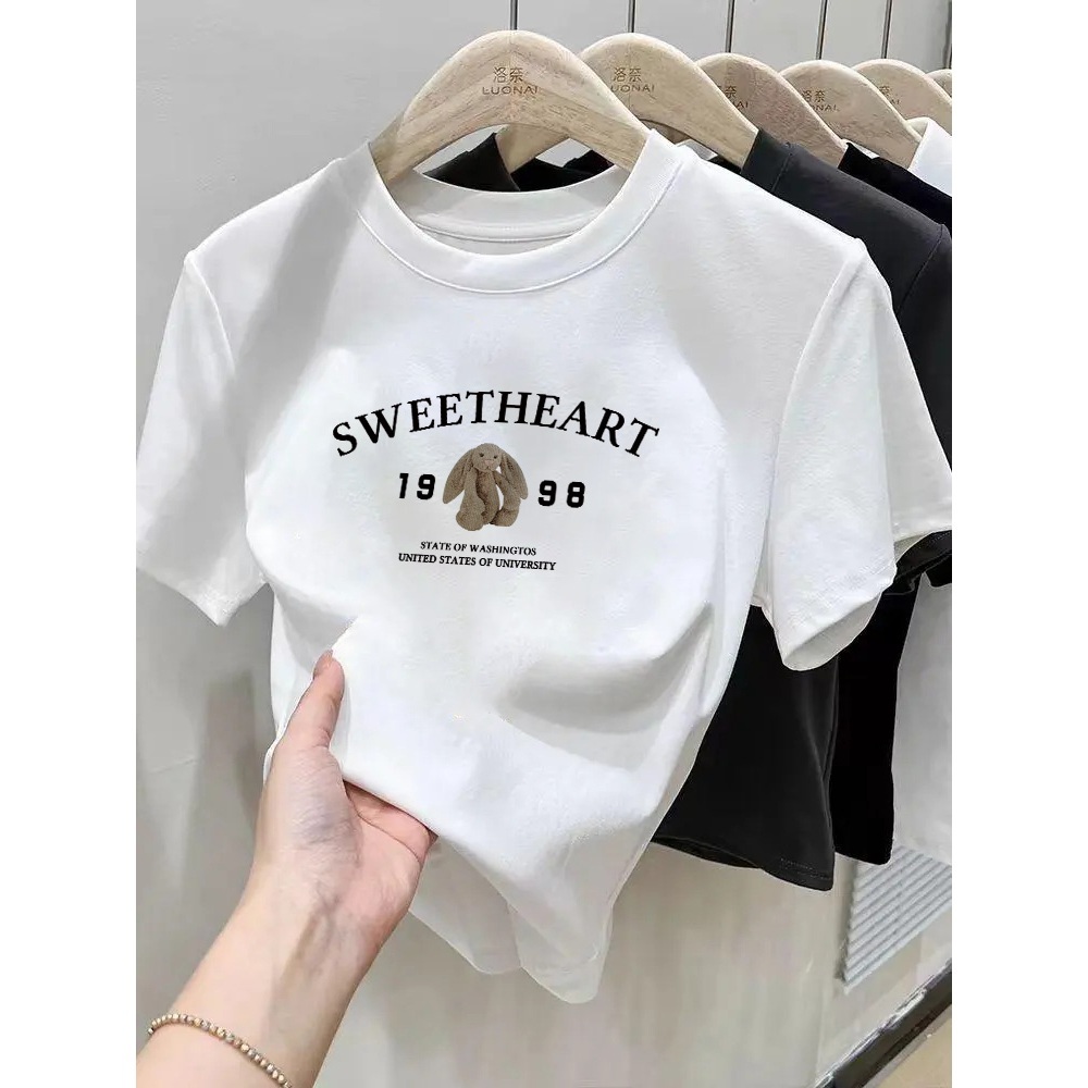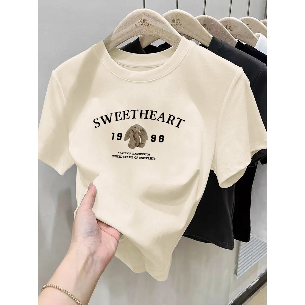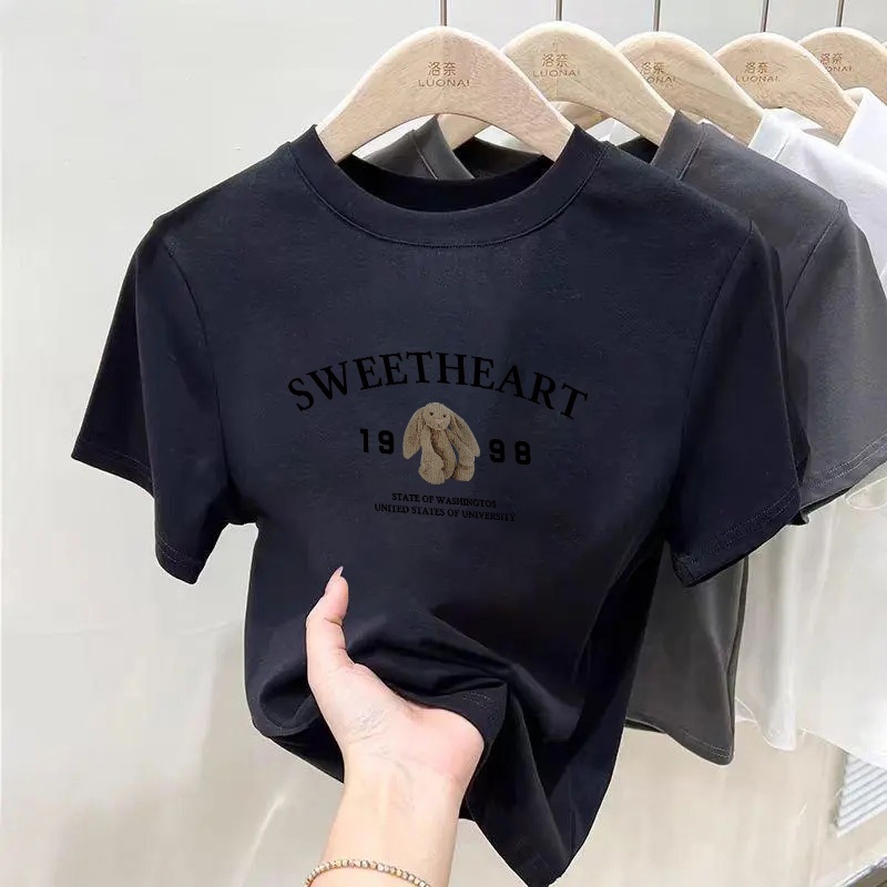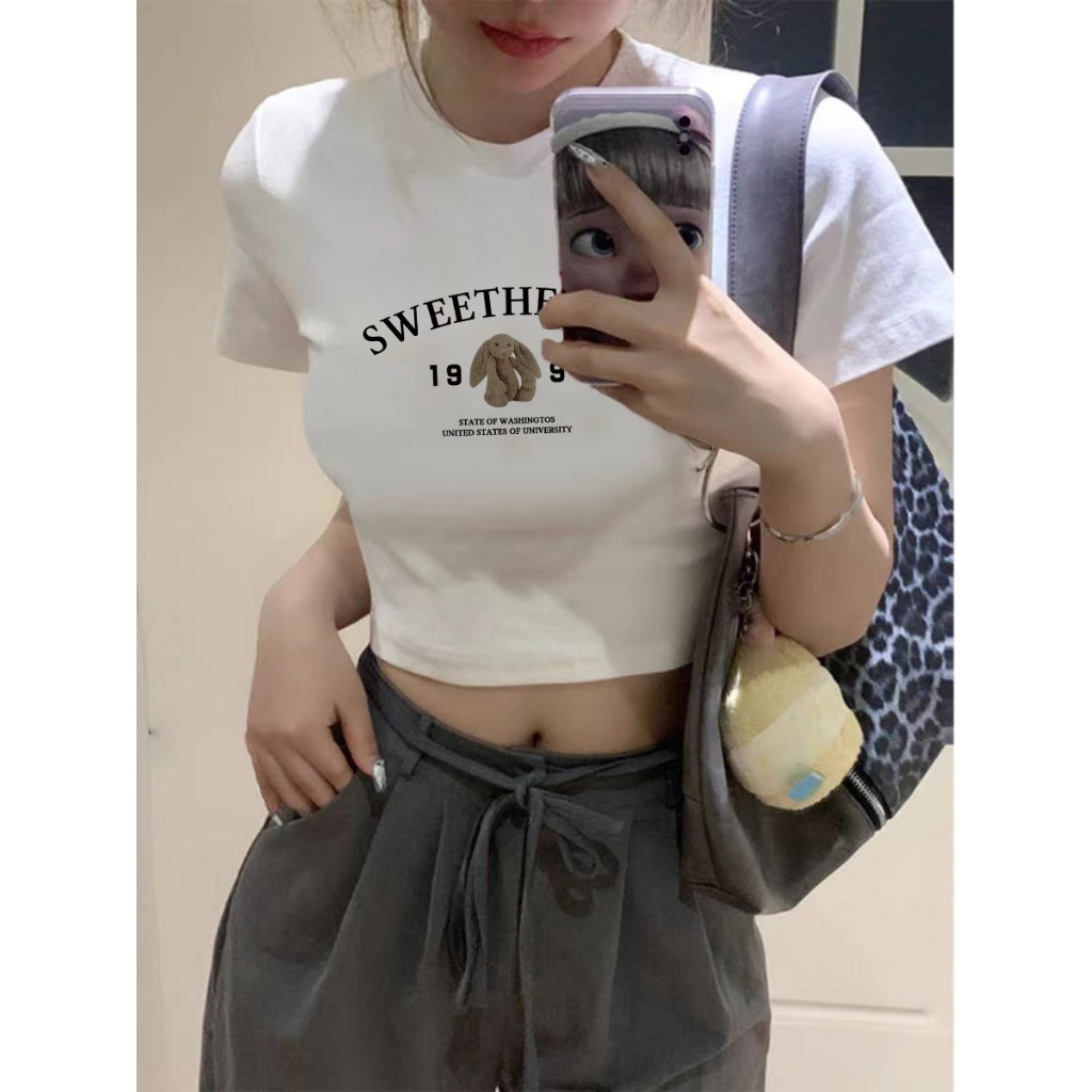 yiyoyi Baju Kaos Crop Top Wanita Korea Lengan Pendek Kaos Wanita Kaos pendek bermotif beruang | kaos wanita kekinian