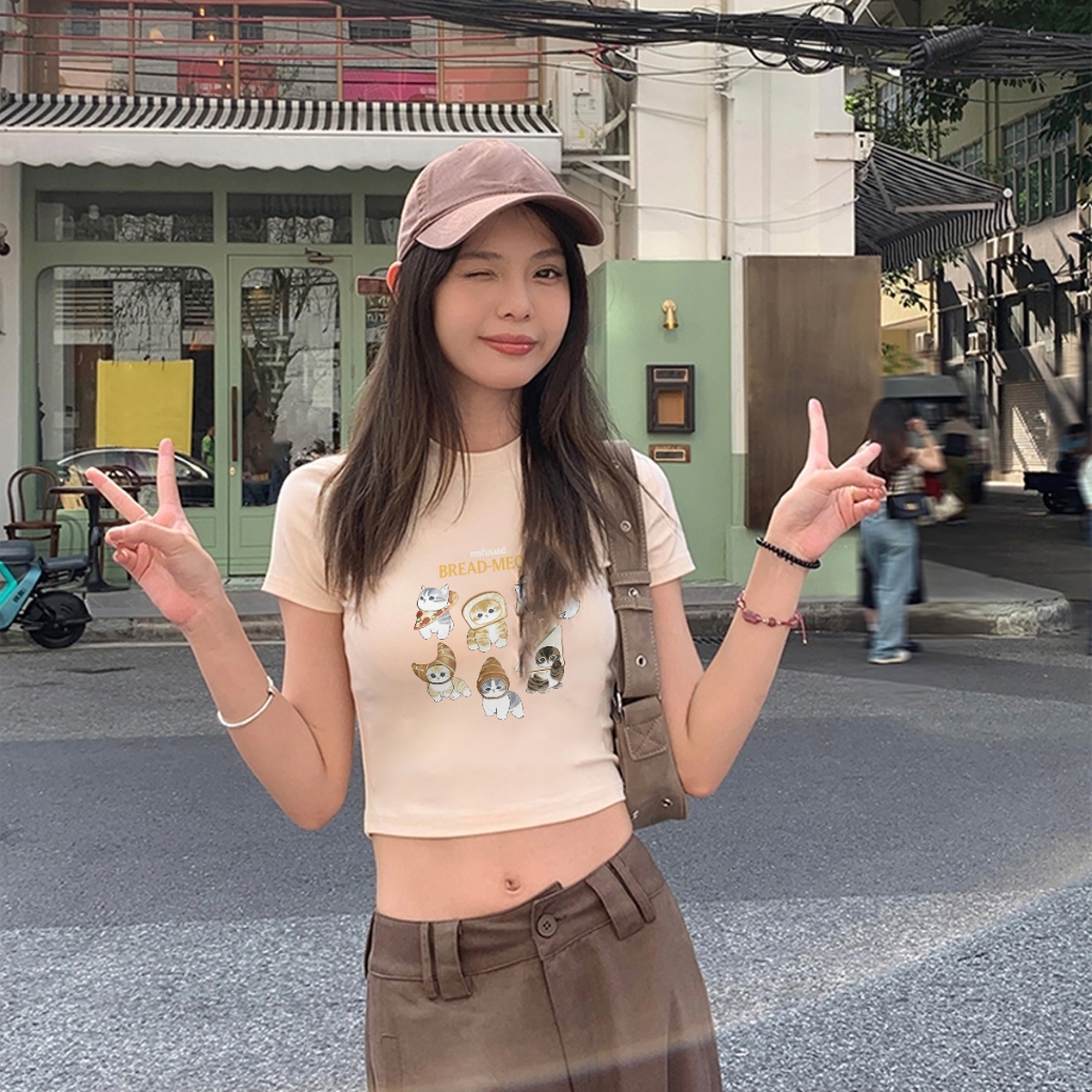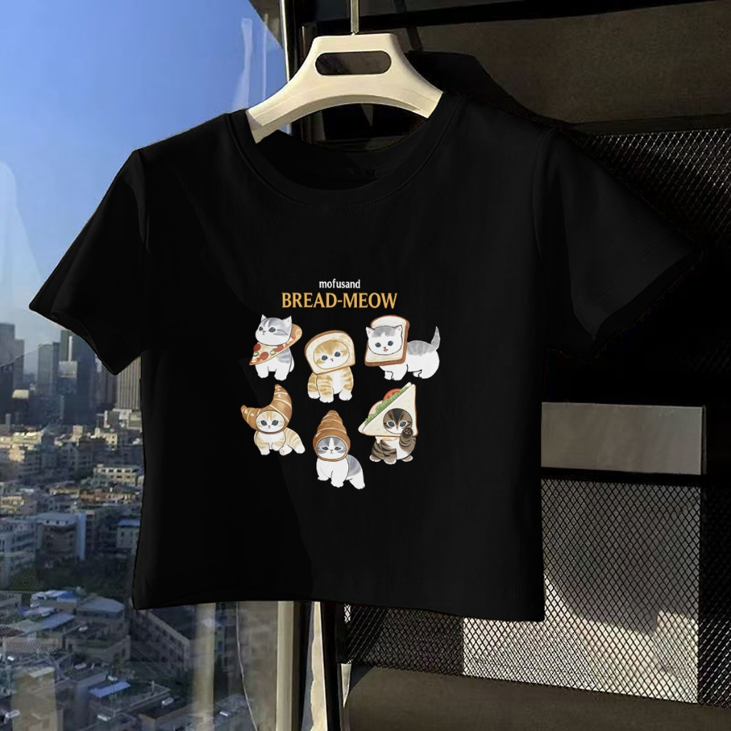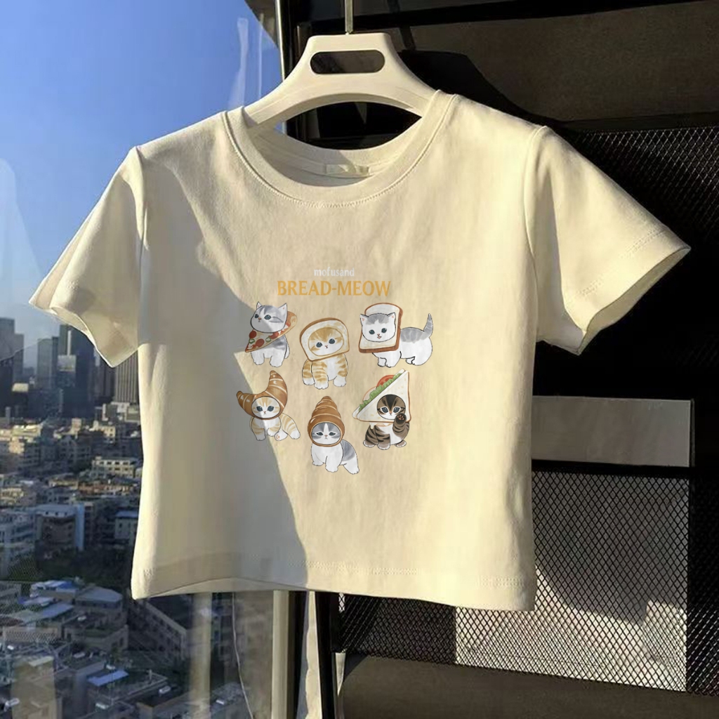 ✅ Ship locally T-shirt Crop Top Lengan Pendek Kaos Wanita Crop Top Korea MOFUSAND Bread Kitten Kaos Crop Wanita Kekinian