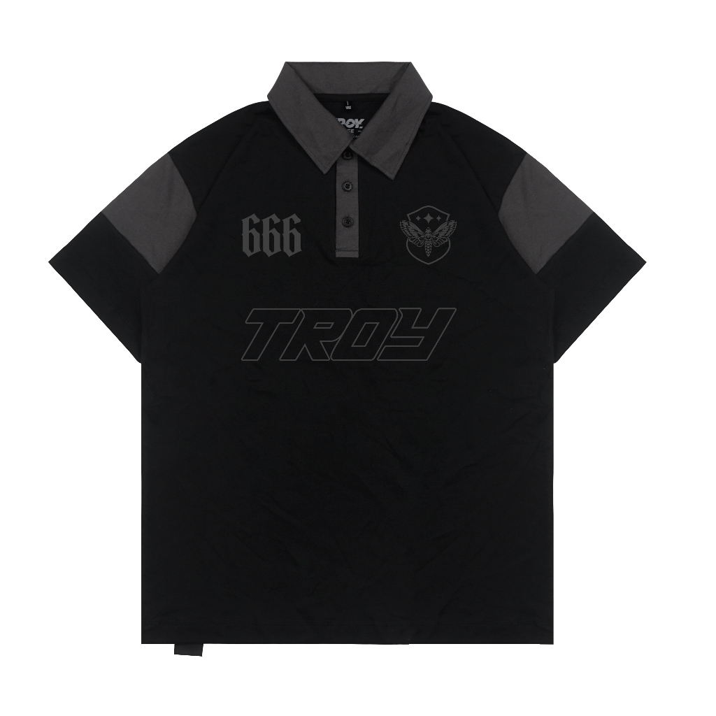 Troy Company Wangky Polo Shirt Black Grey Moth - Kaos Polo Hitam Abu WK 3126