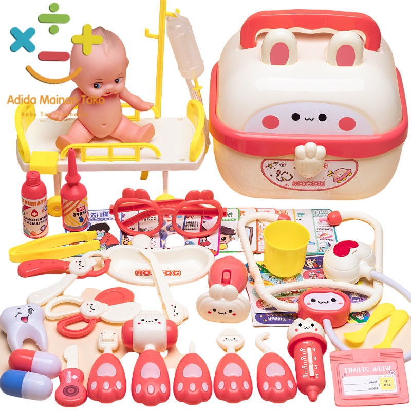 Adida Toys 40/74Pcs Mainan Anak Doctor Koper Mainan Perempuan Dokteran Set Mainan Edukasi
