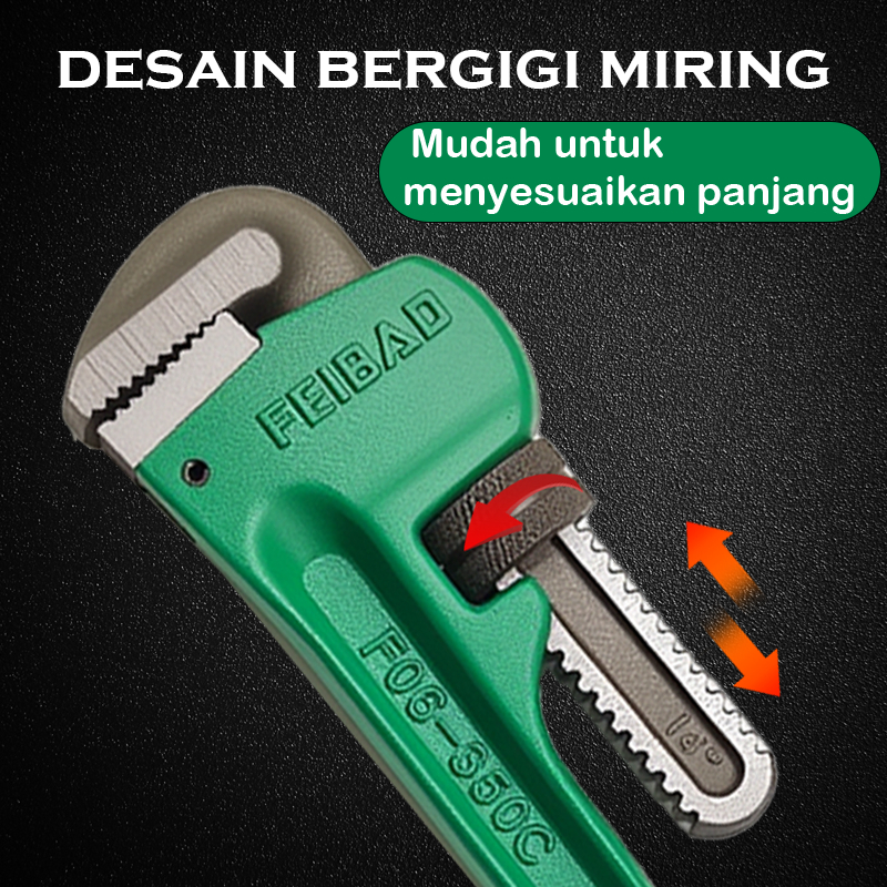 FEIBAO Kunci Pipa Ukuran 8" 10" 12" 14" inch 200mm-350mm Pegangan anti selip CR-V Kekerasan ekstra