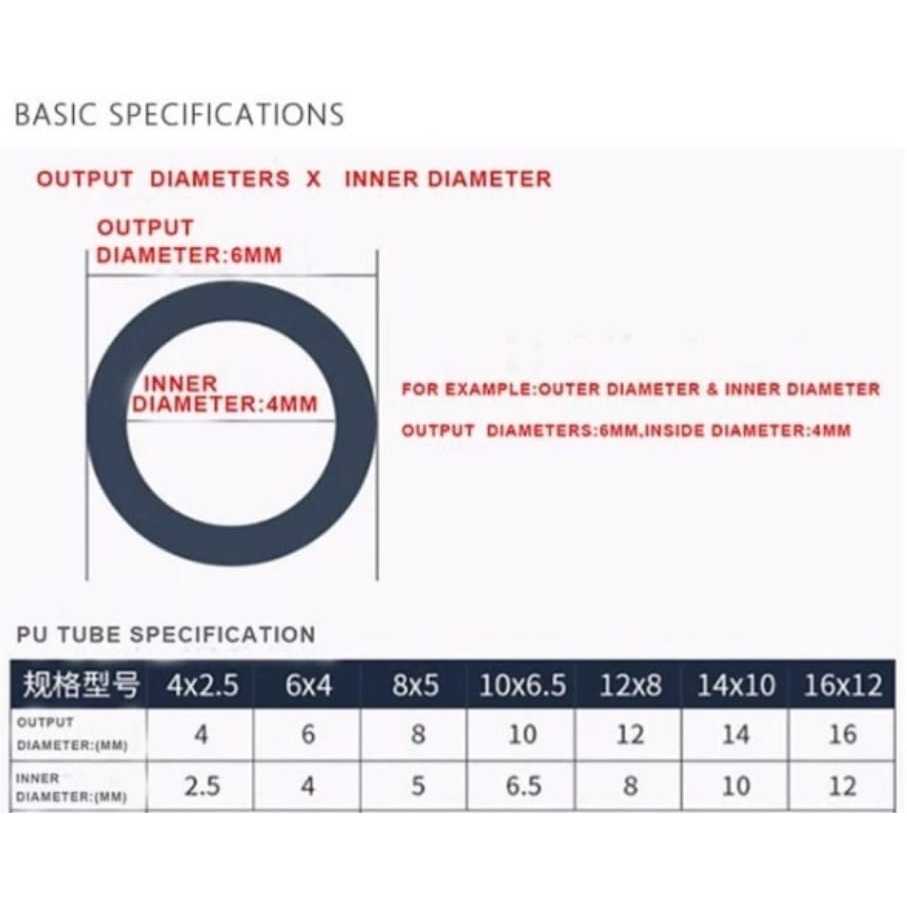 SELANG ANGIN PNEUMATIC 10x6,5MM PU HOSE SELANG POLYURETHANE (PU)