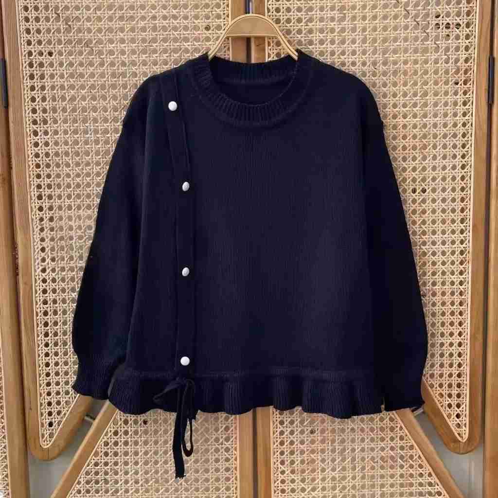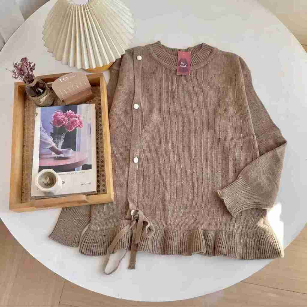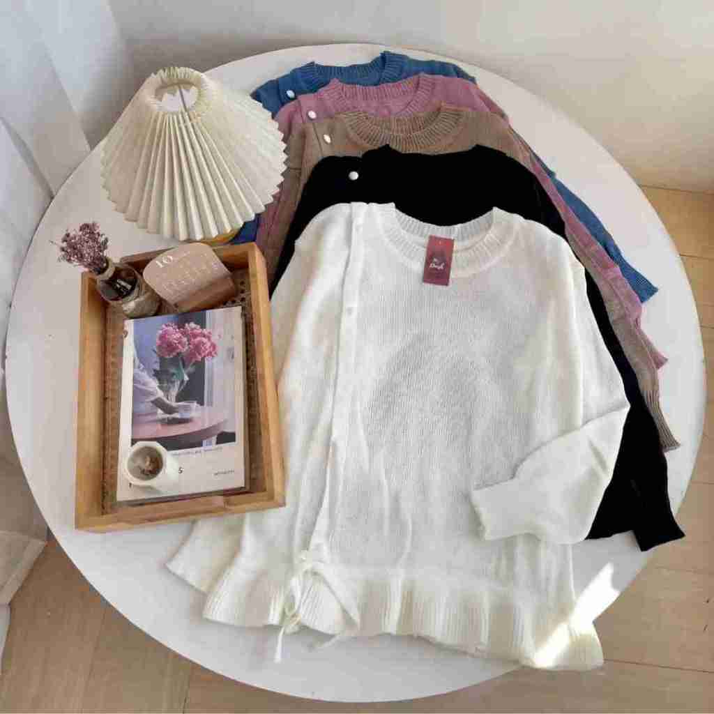 Hana Blouse Atasan Rajut Pinggang Serut Korean Style Wanita Lengan Panjang, Kekinian KNIT TOPS KOREAN