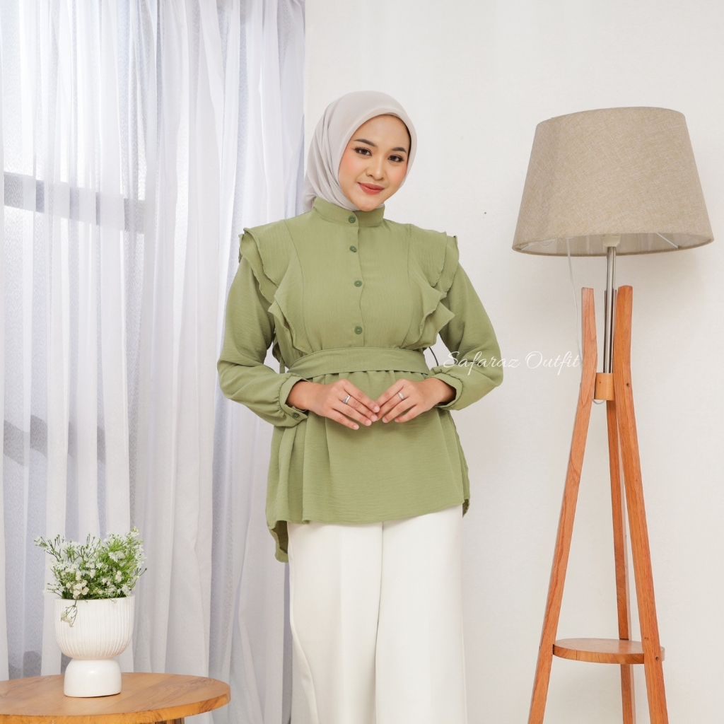 Blouse Azura Atasan Wanita Kekinian Korean style | Kemeja Wanita Ruffle Double Layer Kancing Aktif
