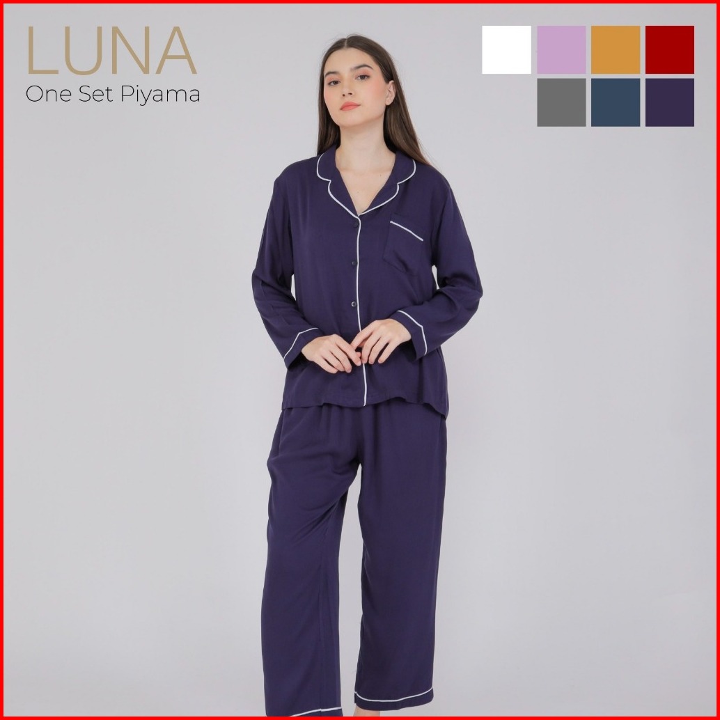 Luna Piyama One Set Baju Celana Panjang Setelan Wanita Atasan Panjang Tidur Piyama Remaja