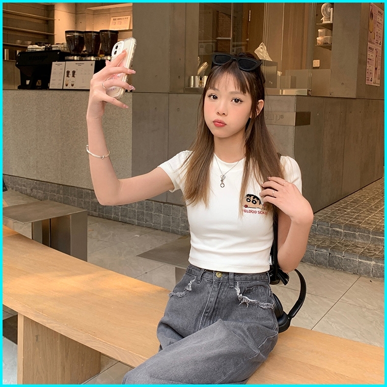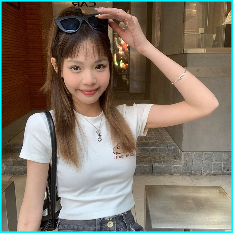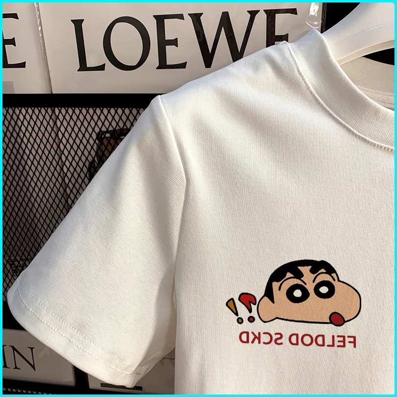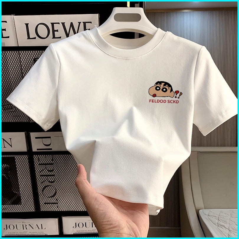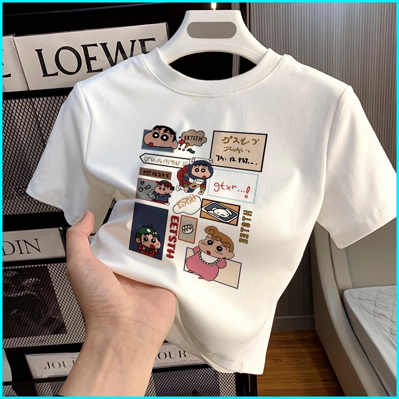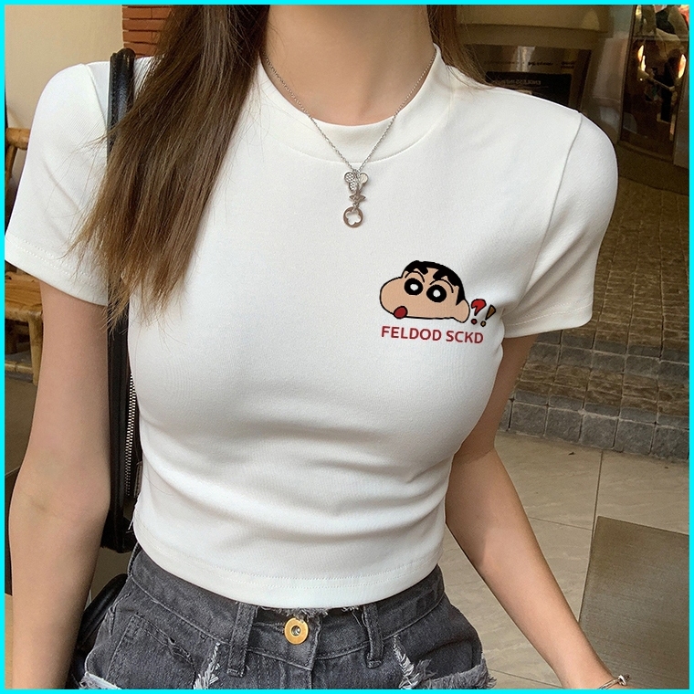 Misco T-shirt Crop Top Y2k Lengan Pendek Baju Kaos Crop Wanita Crayon Shin-chan Baju Atasan Wanita Terbaru Croptee Putih