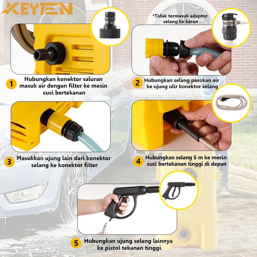 KEYTEN Mesin Cuci Steam Alat Cuci Motor & Mobil Serbaa Alat Pembersih Tekanan Tinggi Pressure Washer Jet Cleaner