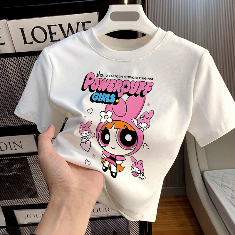Misco Baju Atasan Wanita Terbaru Crop Top Korean Style Cetakan Kartun Anime Crop Top y2k Kaos Wanita Lengan Pendek