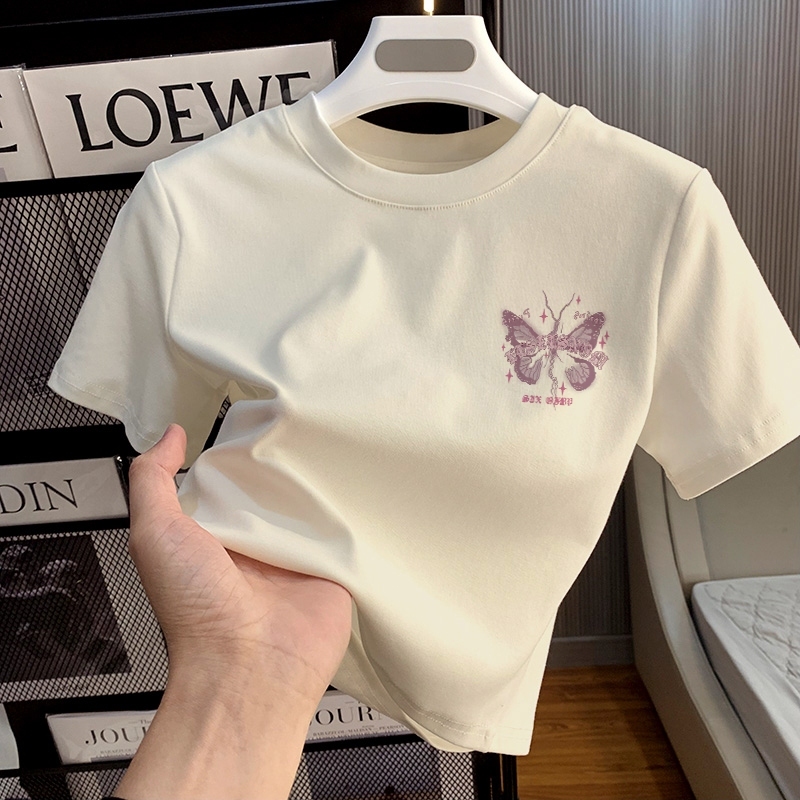 DSSTORY T-shirt Crop Top Tebal y2k Lengan Pendek Baju Kaos Crop Wanita | Logo kupu-kupu kecil | Baju Atasan Wanita Terba