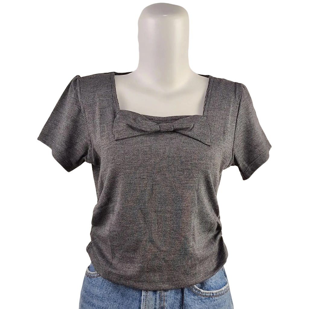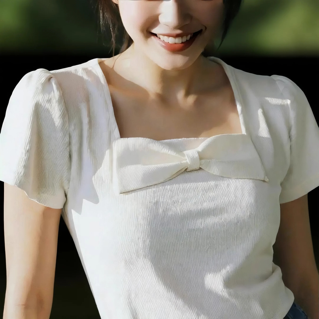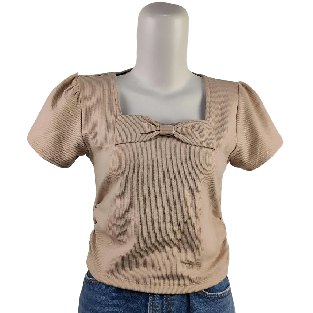 Kaos Crop top korean -Motif Pita Kupu-kupu -Crop Simple -Crop top Karet -T-Shirt Knit Premium