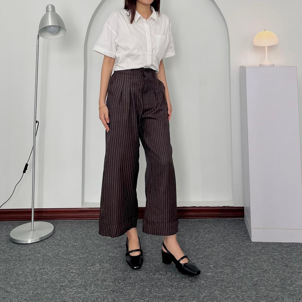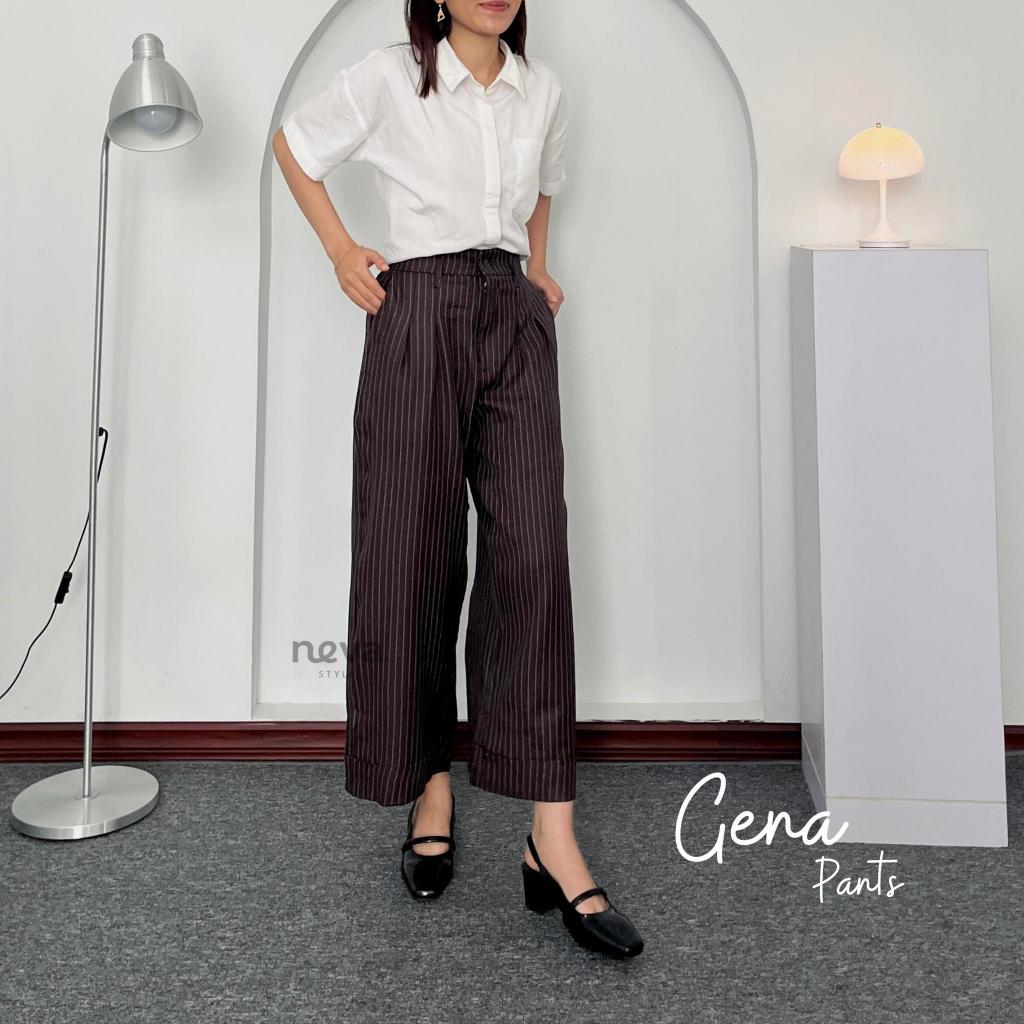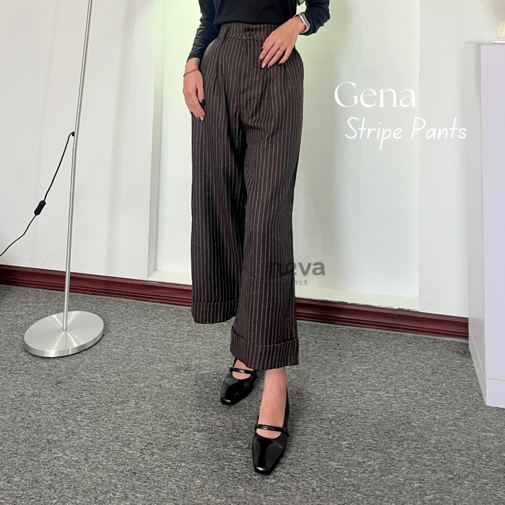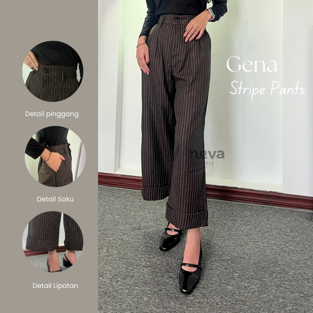 Neva Style - Gena Kulot Stripe Pants Celana Panjang Wanita Bahan Semiwool Variasi Bawah Lipat Big