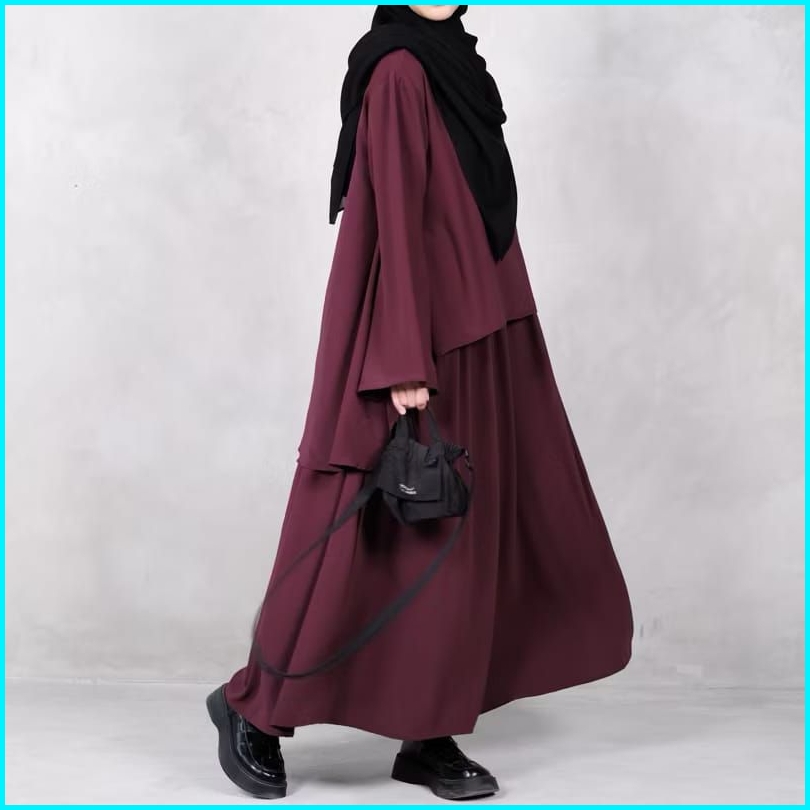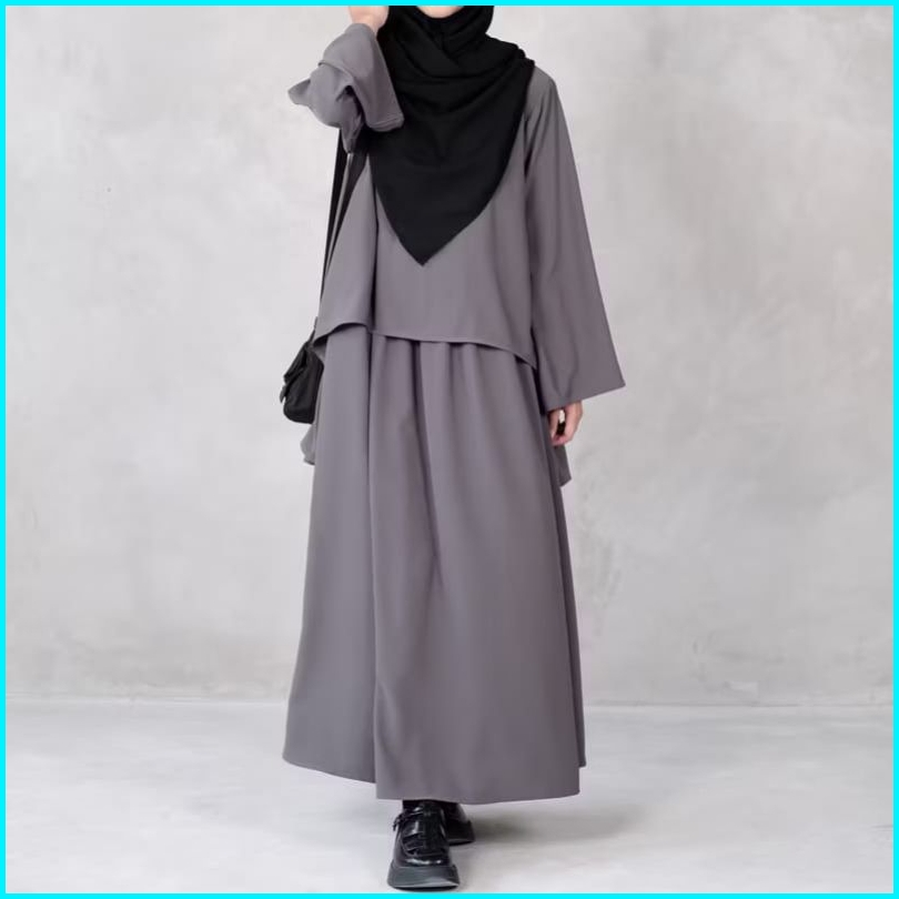 Hanna Abaya One Set Rok Tunik Gamis Remaja Terbaru Bahan Crincle Airflow