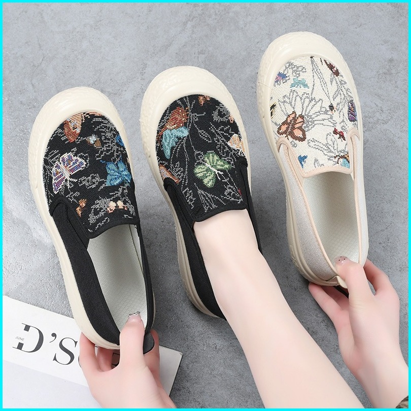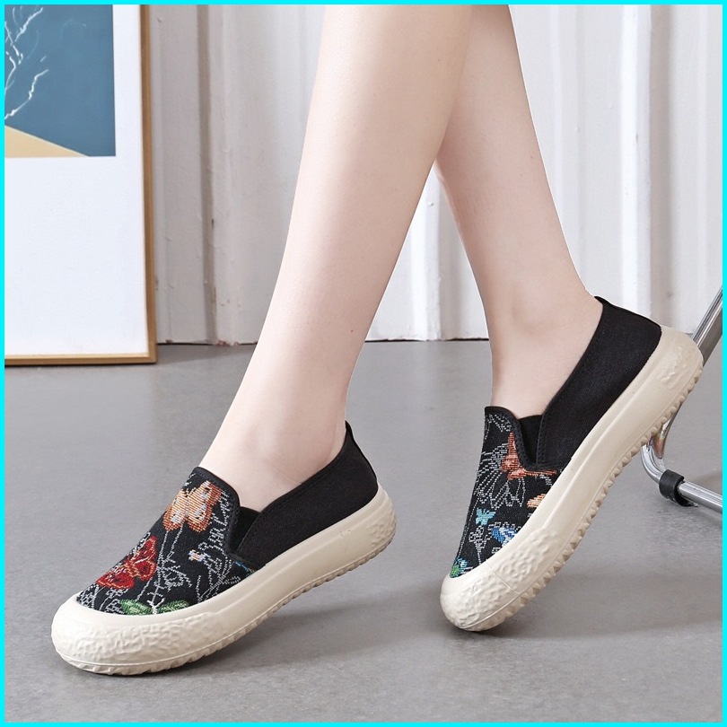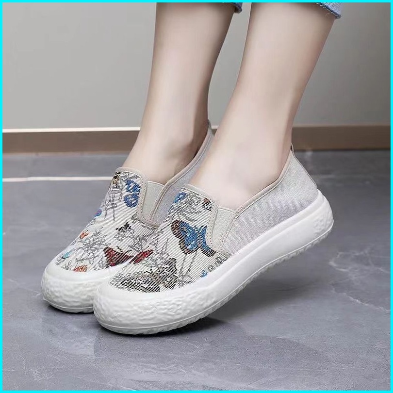 Nw059 Sepatu Slip On Wanita Motif Kupu-kupu