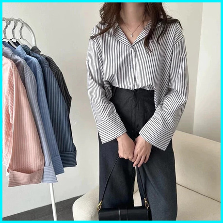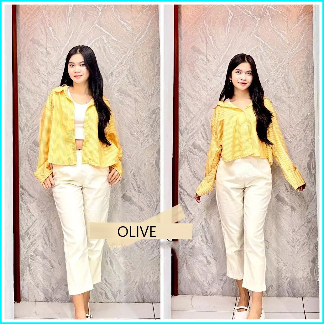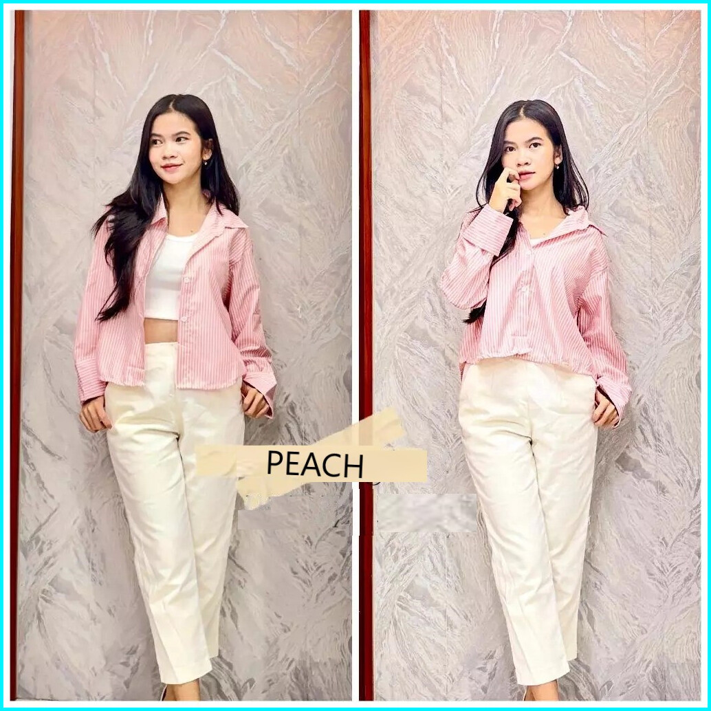 Ziggy Top Stripe Shirt - Kemeja Salur Garis Oversized Crop Shirt Atasan Wanita Lengan Panjang