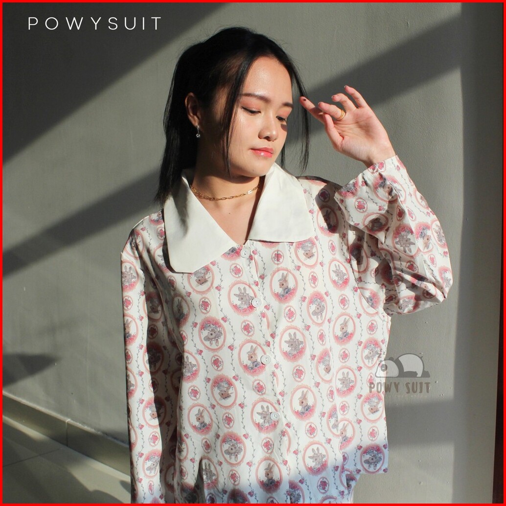 Yx64 Rabbit Piyama Powysuit Satin Sutra Wanita Setelan Lengan Panjang Celana Panjang Lembut Dewasa