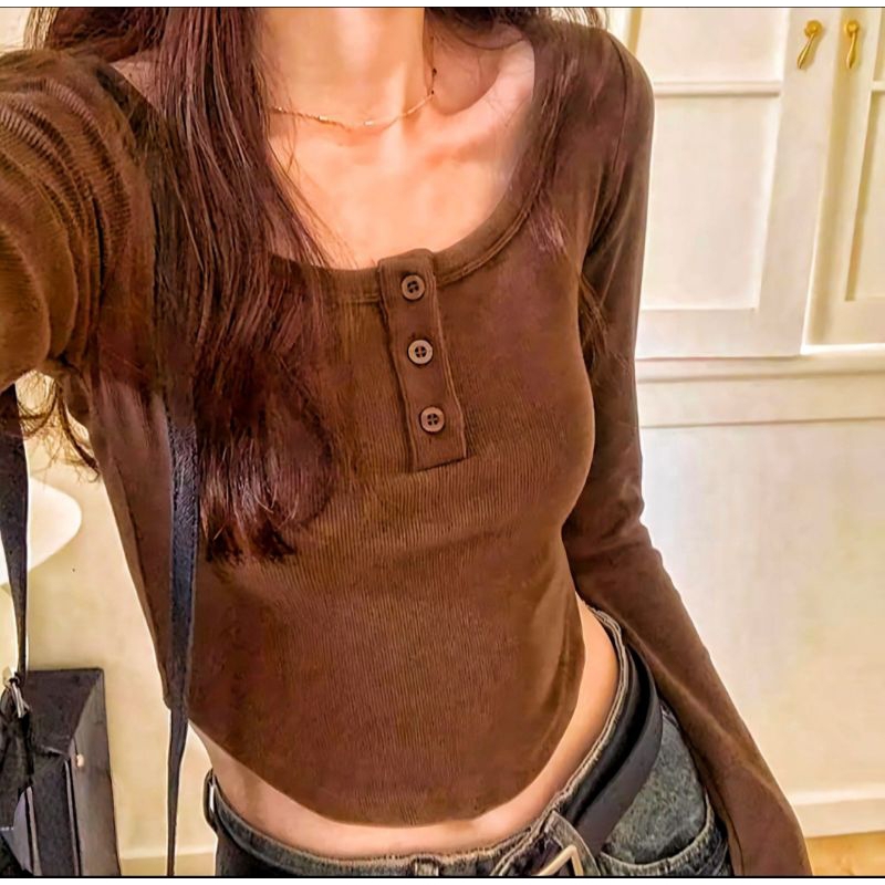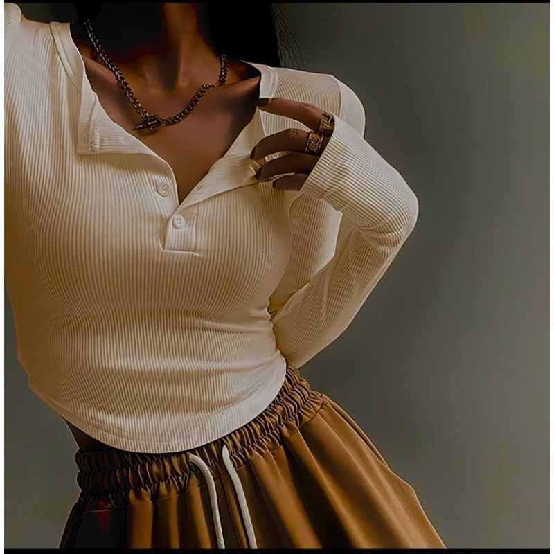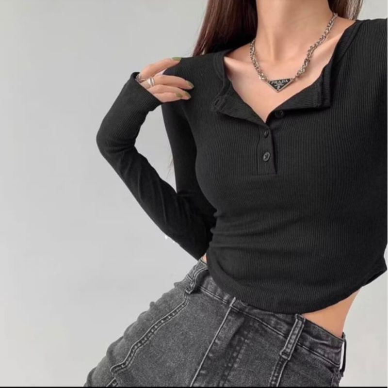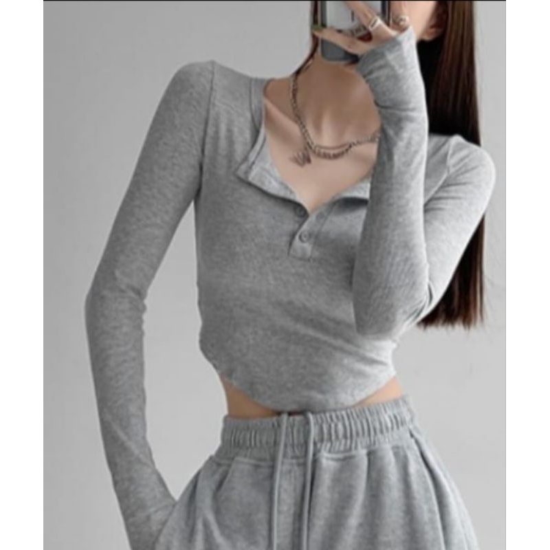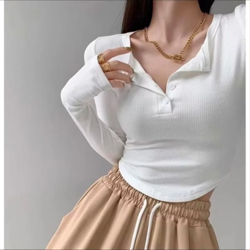 Crop top long Sleeve - kaos crop lengan panjang kancing Korean style