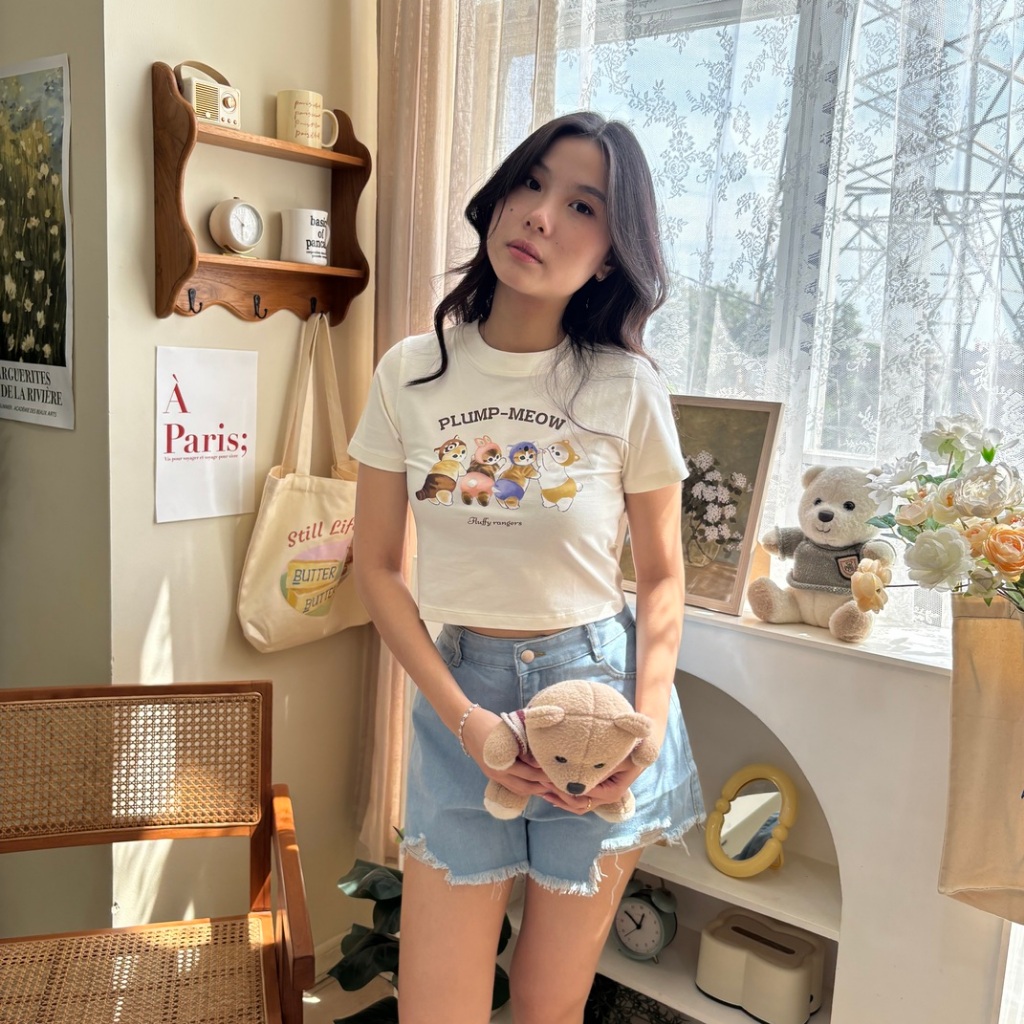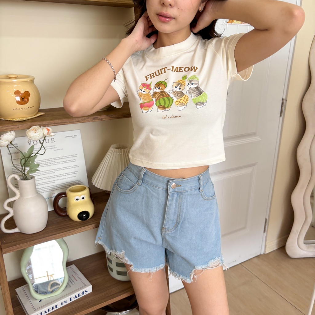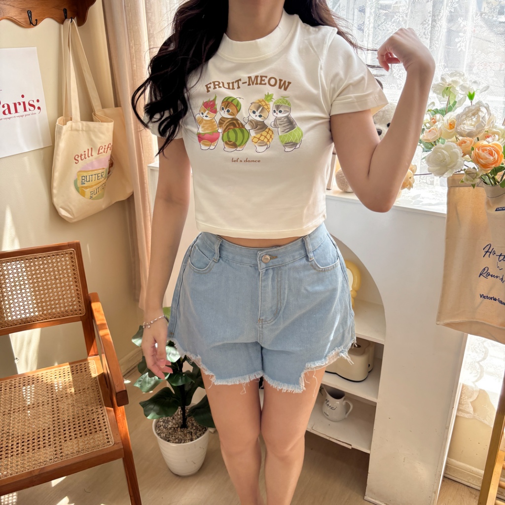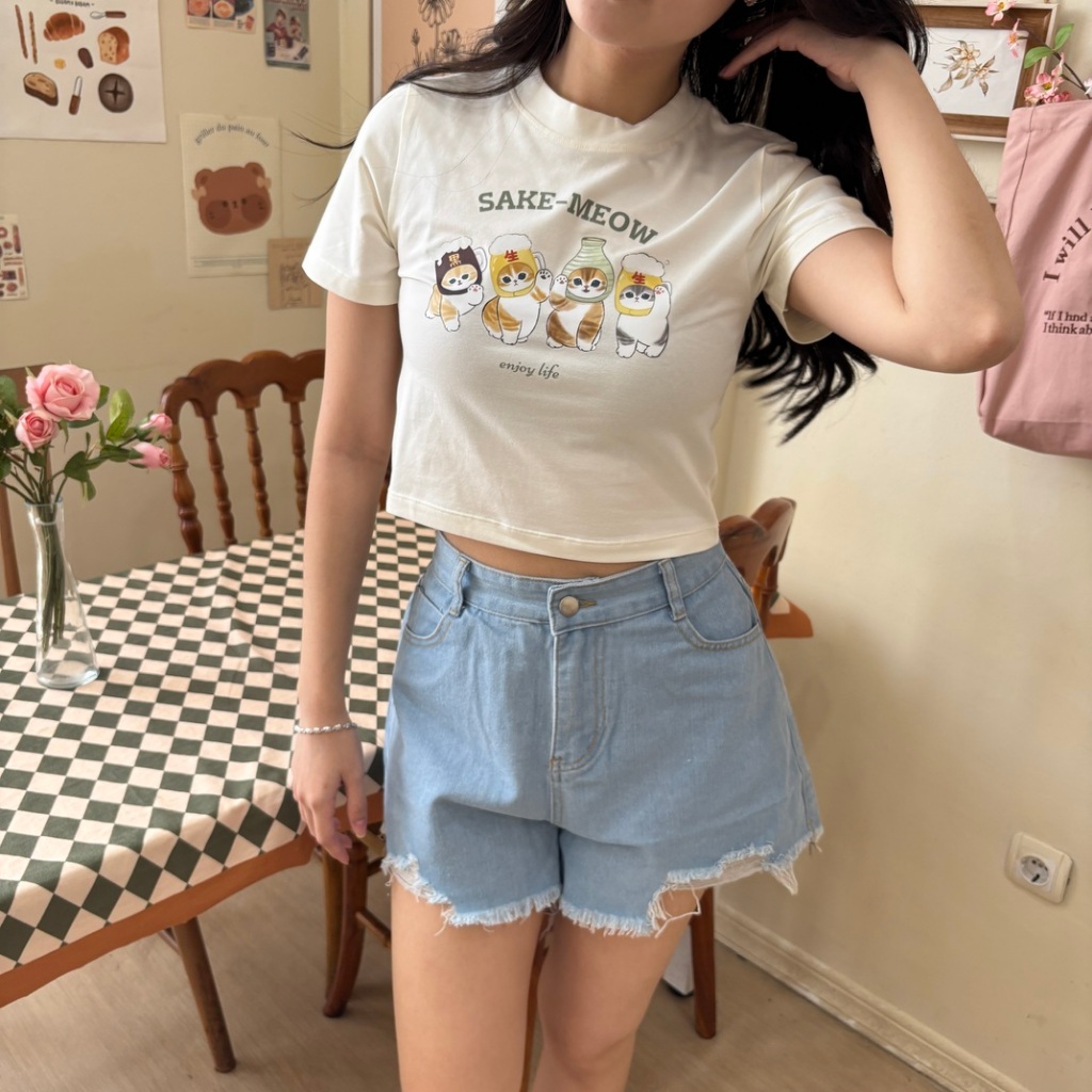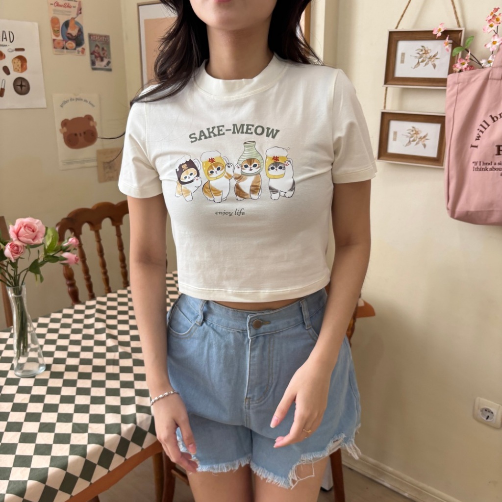 Mofusand Crop Tee / Kaos Kucing Wanita Crop Top / Korean Baby Tee / Cat T-shirt - Relaxar