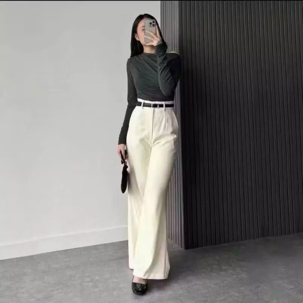 ETTA PANTS Basic Celana Kantor wanita Loose Pants Formal Panjang Cutbray Highwaist Celana Kerja Anti
