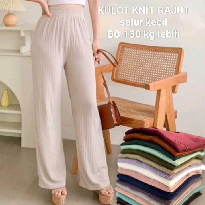 Celana Knit Kulot Wanita Pinggang Full Karet Bawahan Wanita Best Seller Top / Knit Kulot Wanita