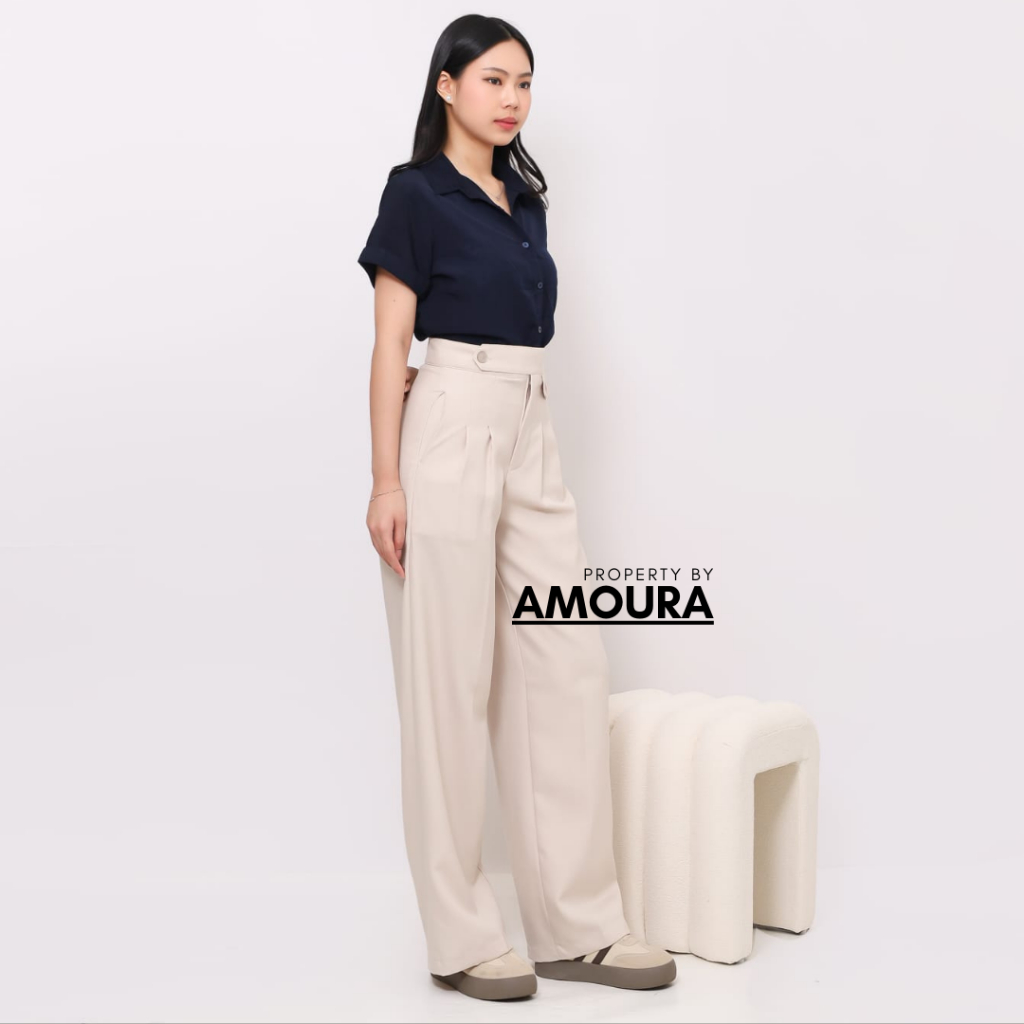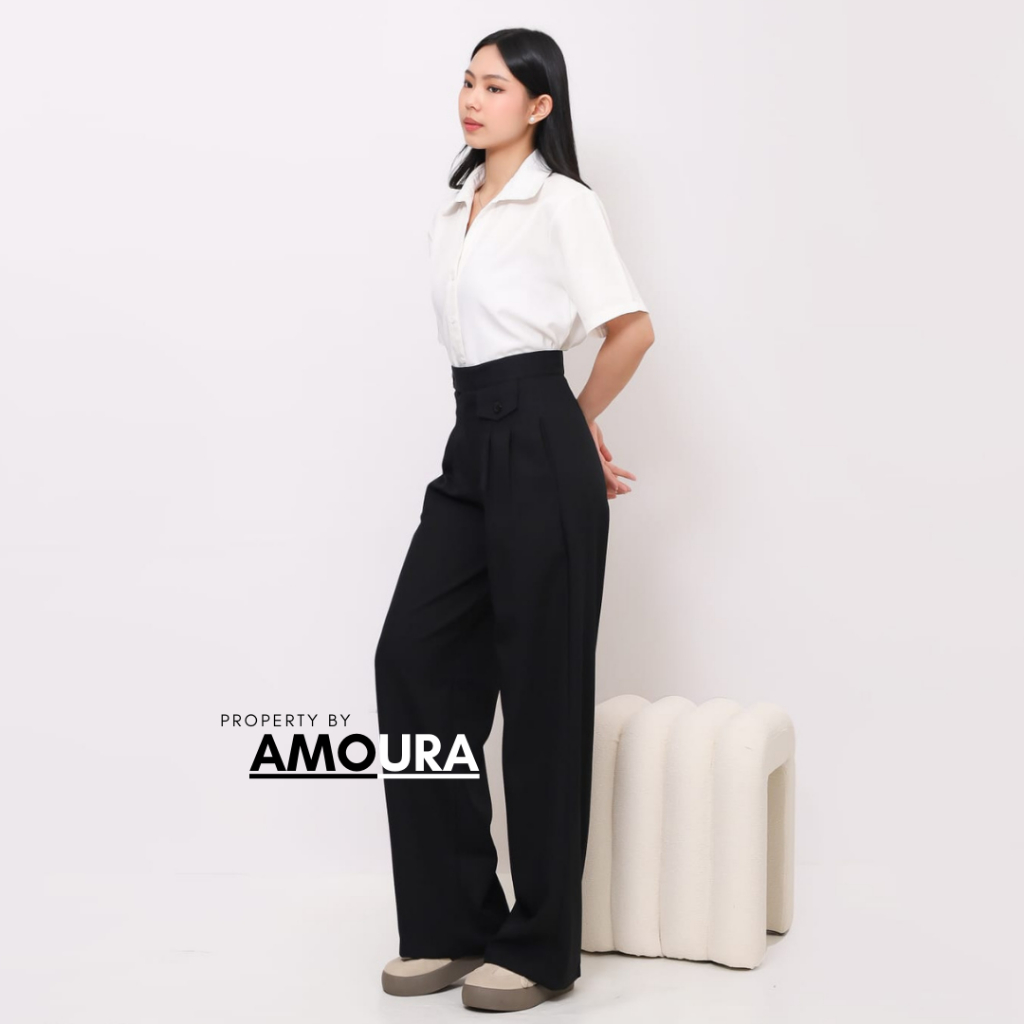 AMOURA - Celana Panjang Wanita Wide Highwaist Pants Basic Korean Long Trousers