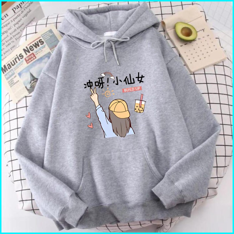 Build Up Bobba Sweater Hoodie Perempuan Dewasa Bahan Premium Distro Size M-xxl Sablon Dtf