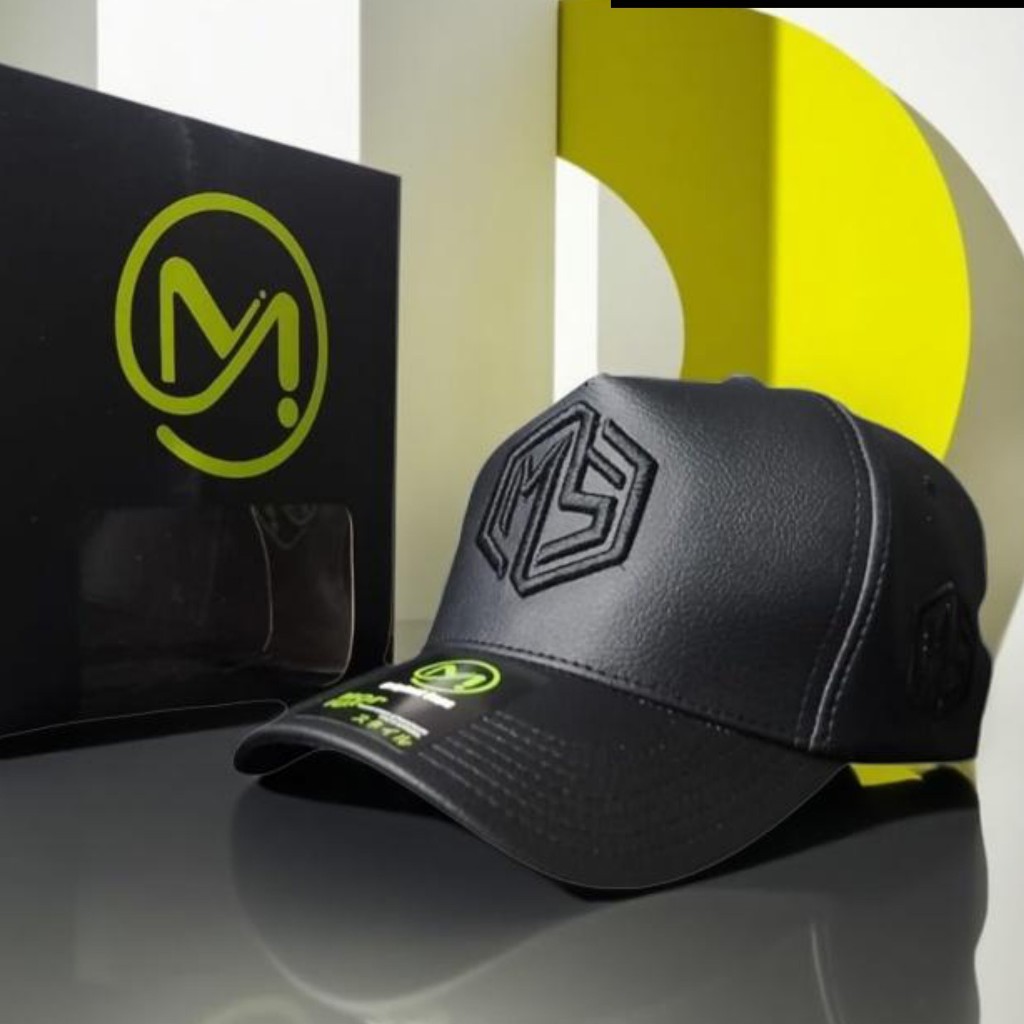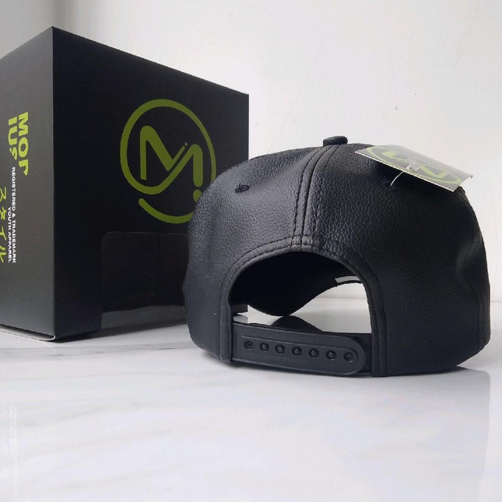 Topi Kulit Sintetis Premium Pria – Model Baseball Hitam Elegan Bordir Timbul