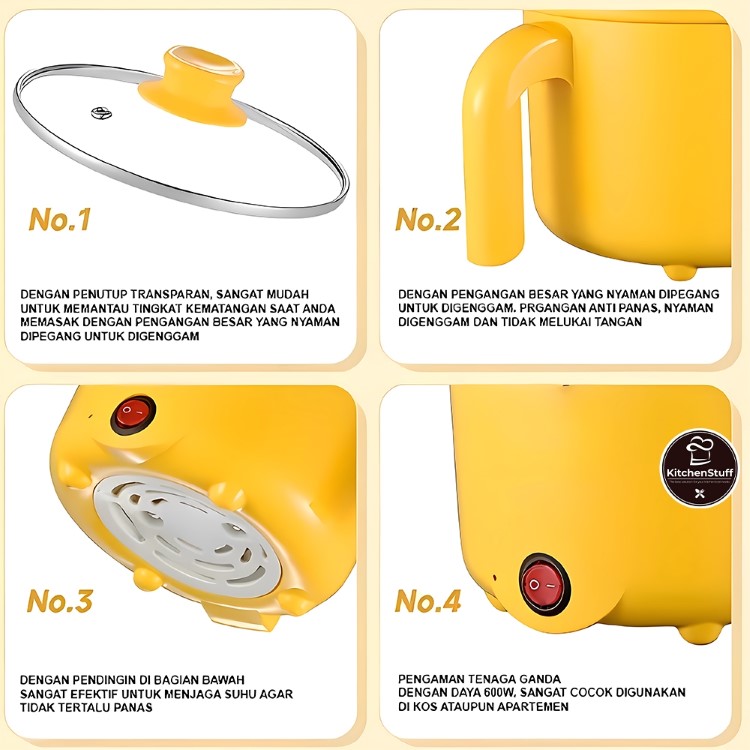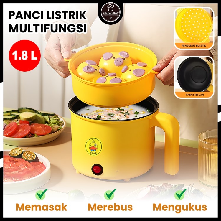Panci Listrik Mini 450W Multifungsi Serbaguna Diameter 18cm Teflon Anti Lengket Murah Termurah Pengukus Portable