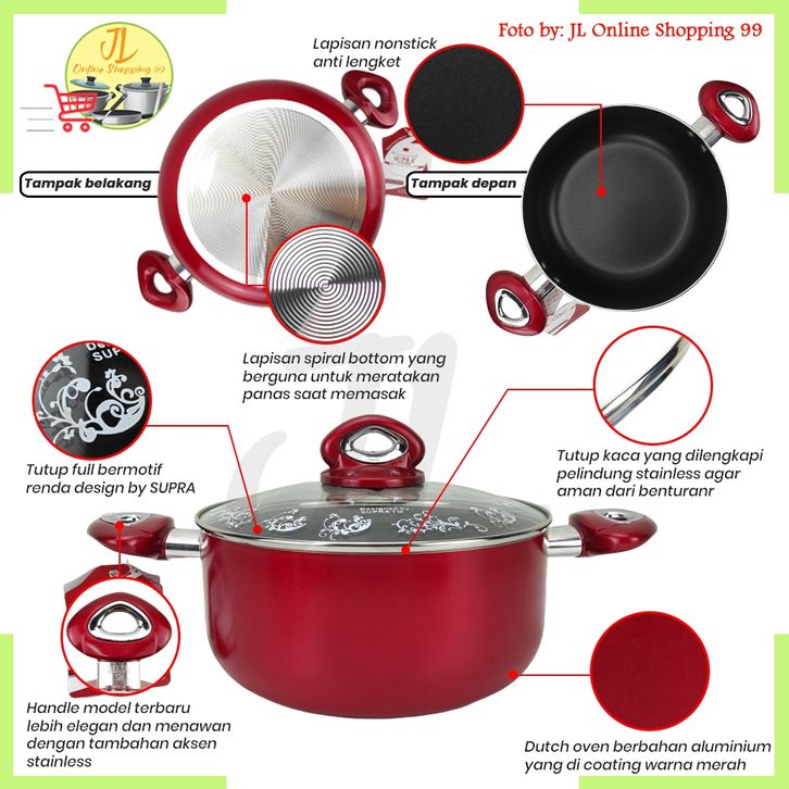 panci set / wajan anti lengket teflon / 7pcs cookware set pastel Merah New Handle SUPRA