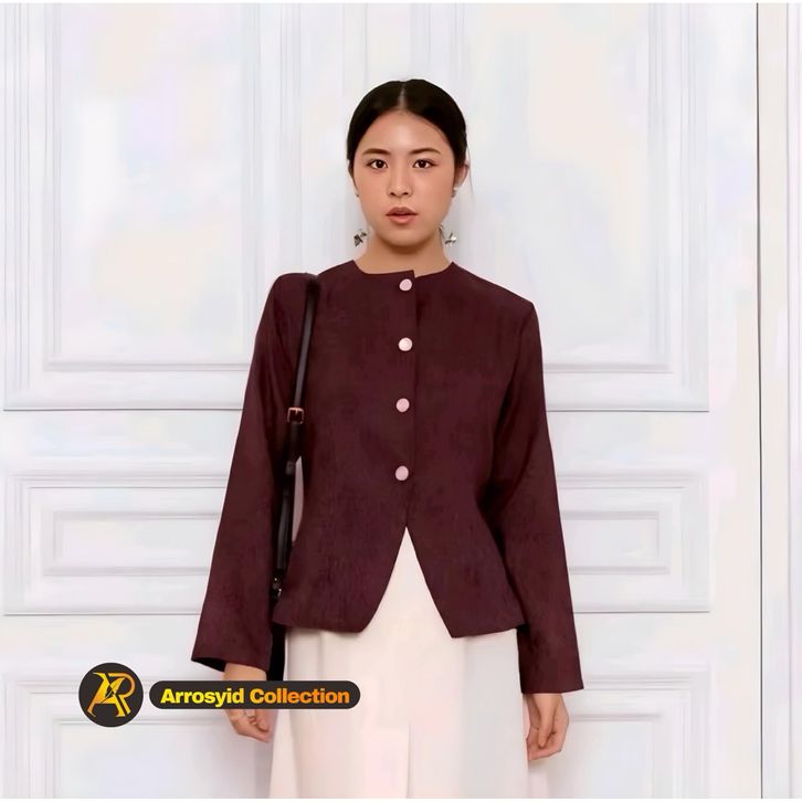 TERBARU Blazer wanita Korean style bahan semi woll Full kancing / atasan lengan panjang / hijab friendly blouse /