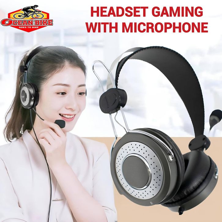Headset Headphone Gaming Earphone Super Bass Mic Noise Cancellation PC Mobile Komputer HP HS04SU