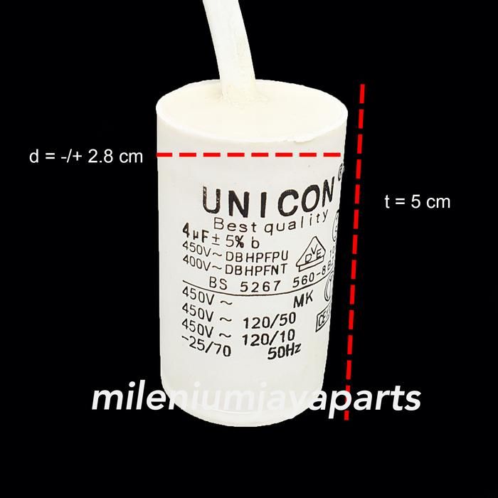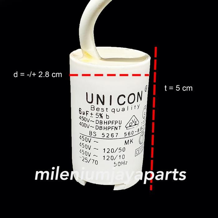 Kapasitor Bulat Mesin Cuci / Pompa Air 4/5/6/8 Mikro - 4