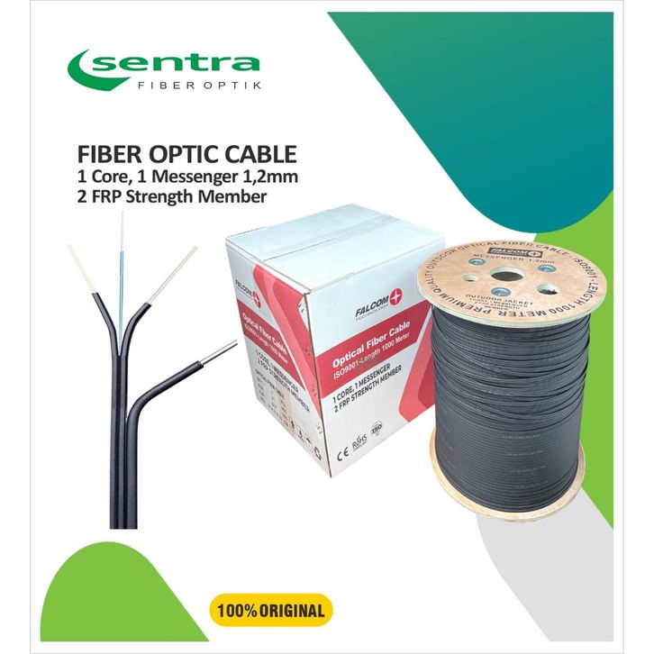 Kabel FO dropcore Falcom Technology Fiber Optik 1 Core 3 seling , 2 FRP + 1 Messenger 1.2mm 1000m