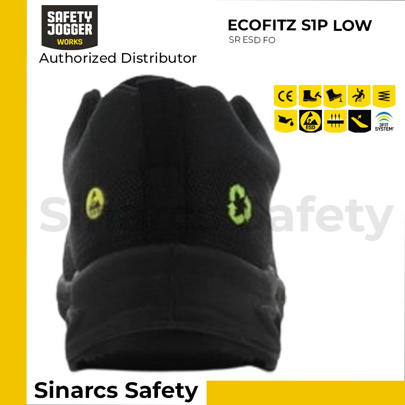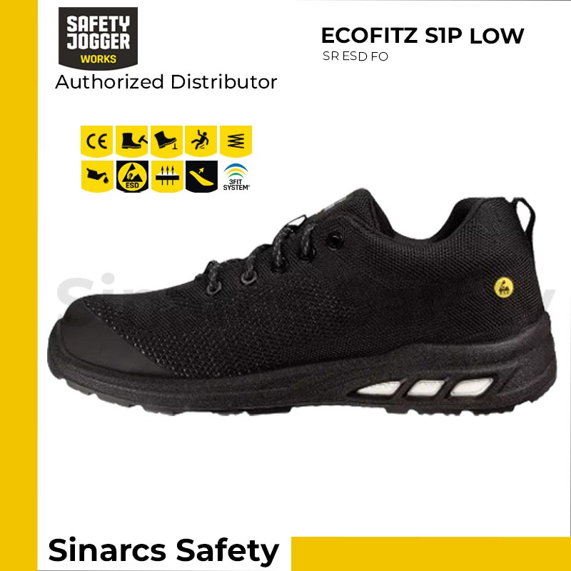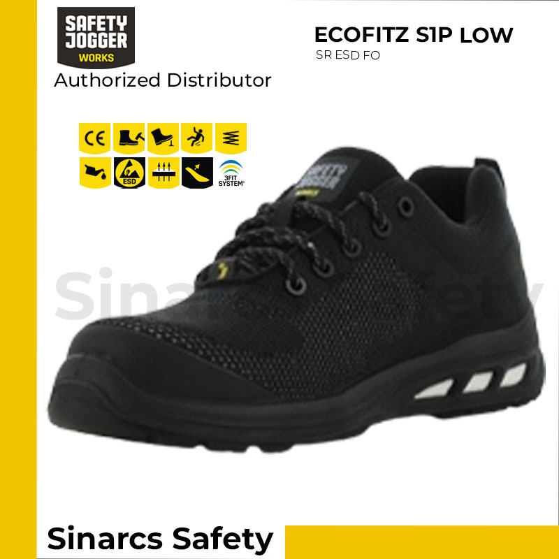 Sepatu Safety Jogger ECOFITZ S1P Low Black Hitam Sepatu Safety Pria Ujung Besi Sepatu Kerja Lapangan Outdoor Awet