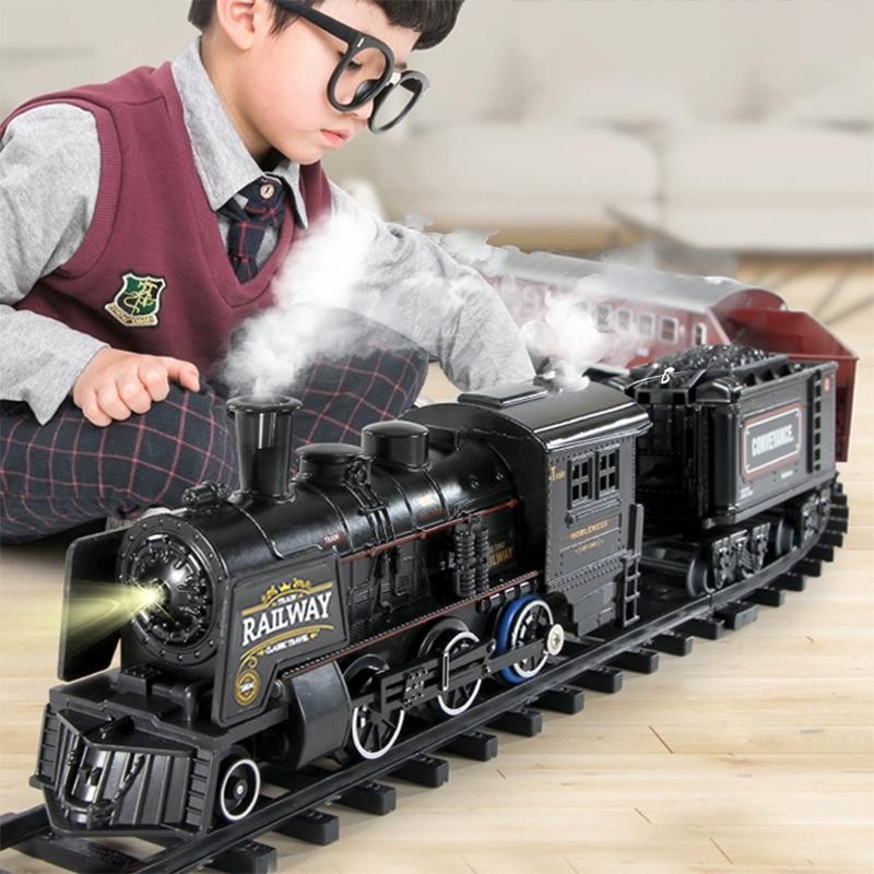 Mainan Kereta ELEKTRIK Klasik edukasi Train Set Laki Laki kereta api rel lokomotif gerbong Anak kado
