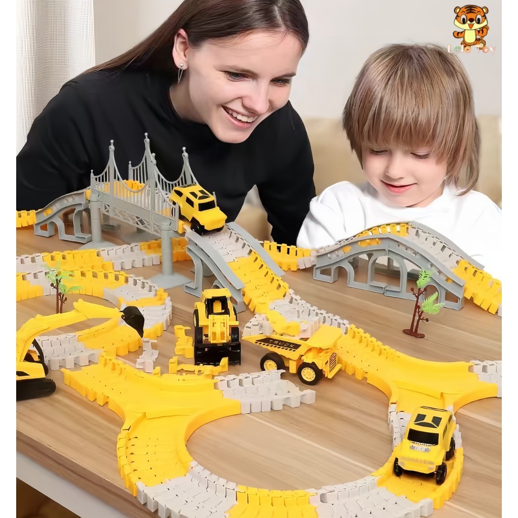 Lele Toys Mainan Mobil Rel 2 Mobil Anak DIY Rakitan Kereta dirakit jalur kereta api