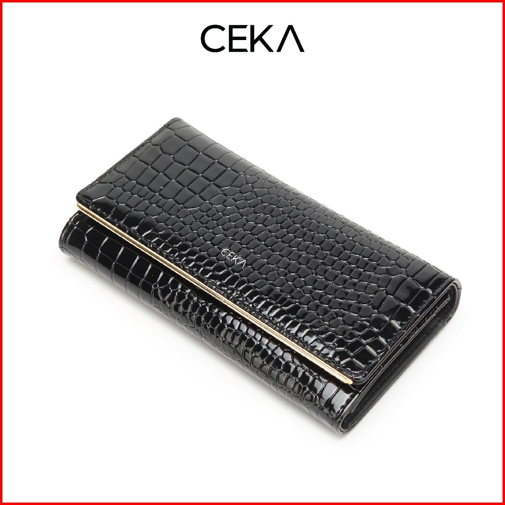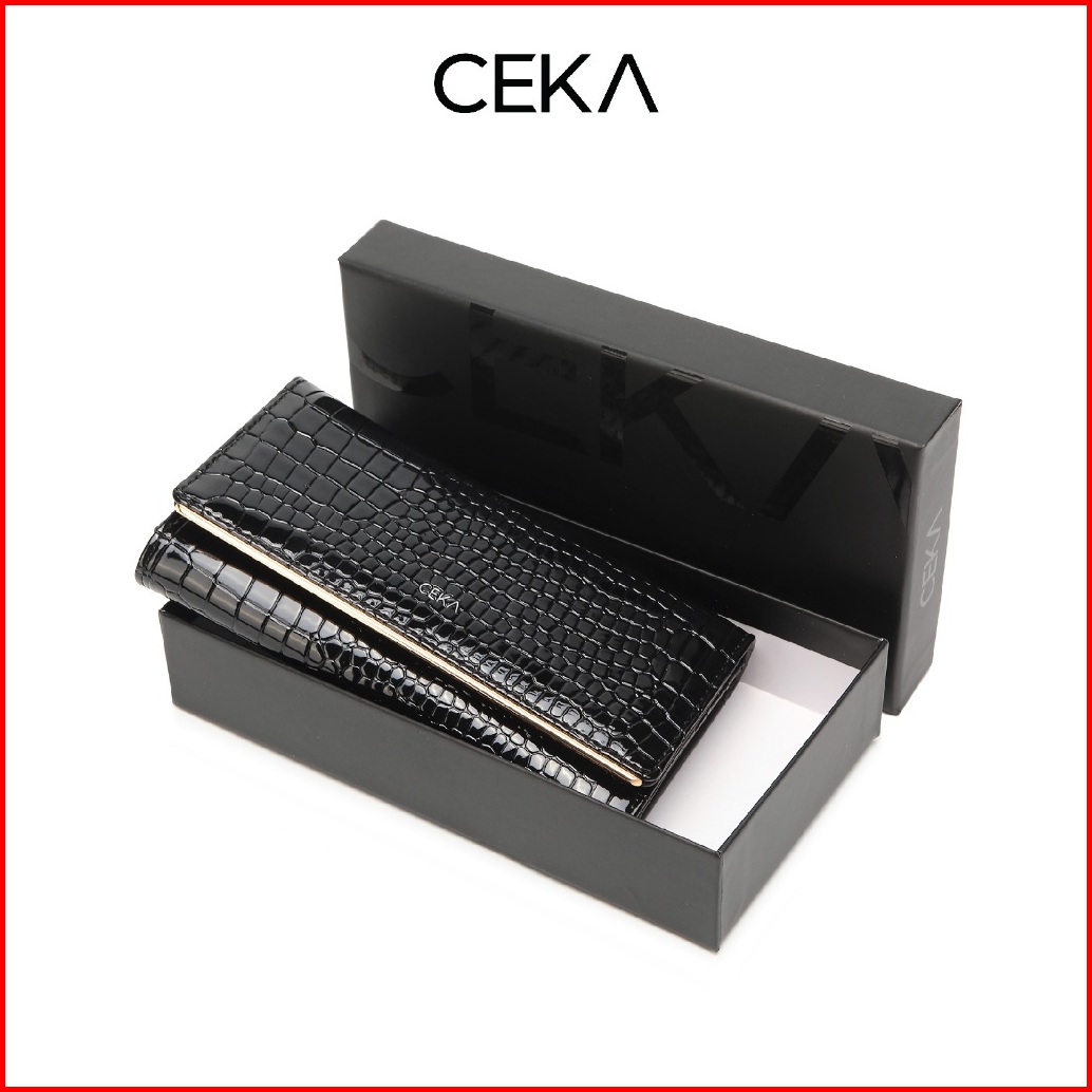 Free Box Ceka Dompet Wanita Panjang Beta Long Wallet Kulit Croco Kekinian Dengan Resleting Import