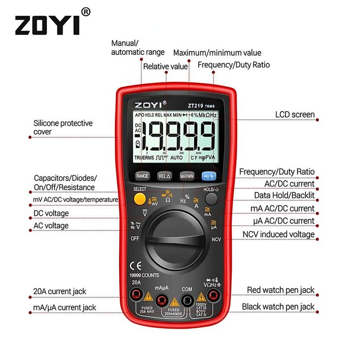 ZOYI ZT-219 Avometer Multimeter Avometer 19999 Counts AC/DC Lengkap