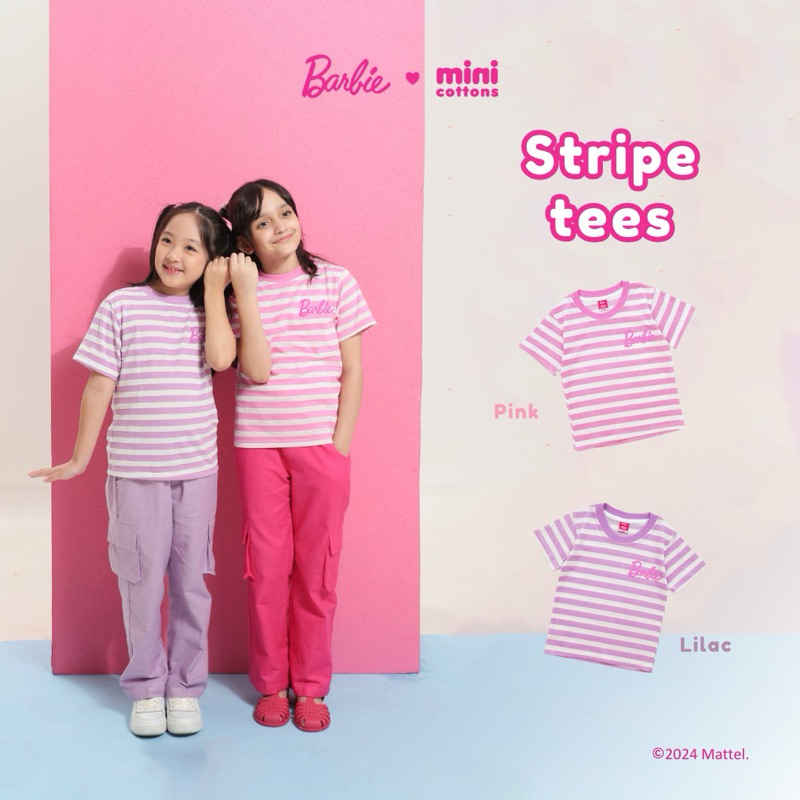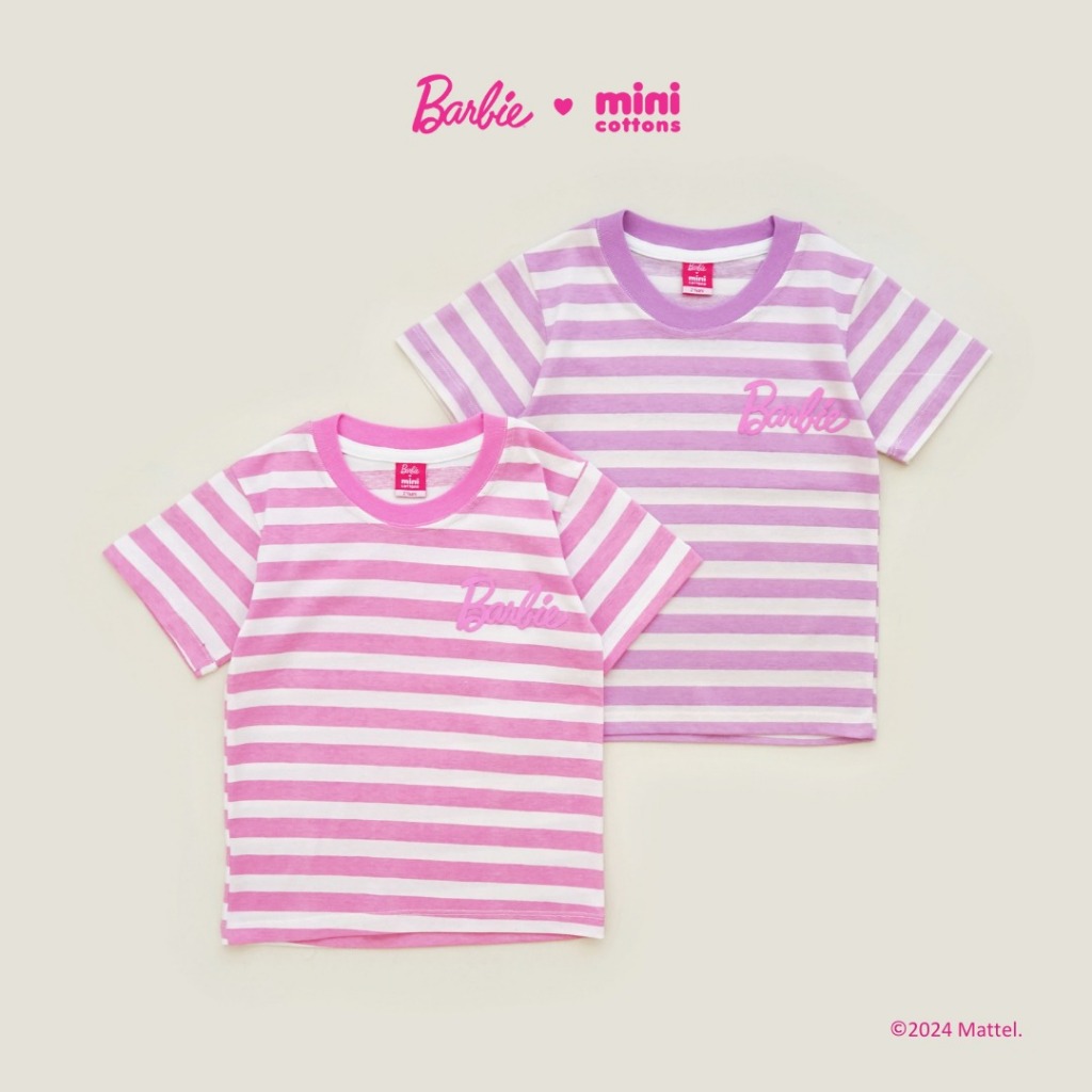 Barbie x Minicottons Atasan Stripe Tshirt Salur Kaos Baju Anak Perempuan 2-12 Tahun