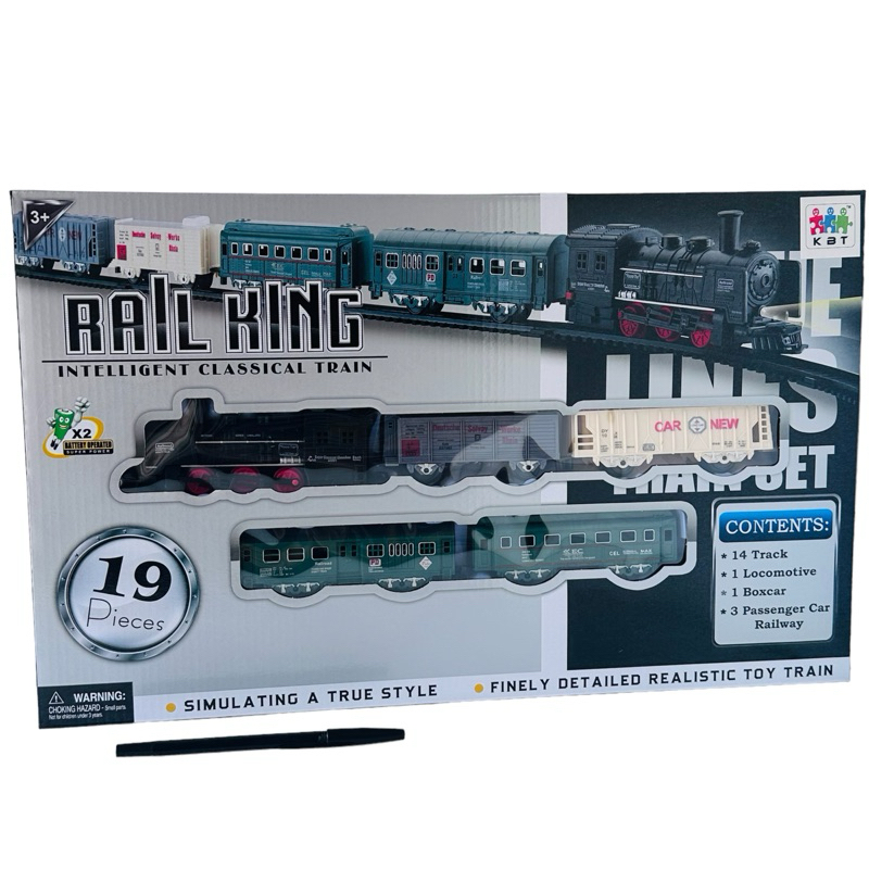 156 Mainan anak kereta Rail king 19Pcs Mainan anak Kerta Api locomotif 4 Gerbong