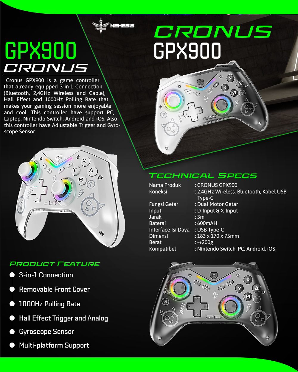 Gamepad Wireless NYK Nemesis CRONUS GX500 GX 500 GX-500 Anti Drifting Hall Effect Bluetooth Gaming Controller Joystick