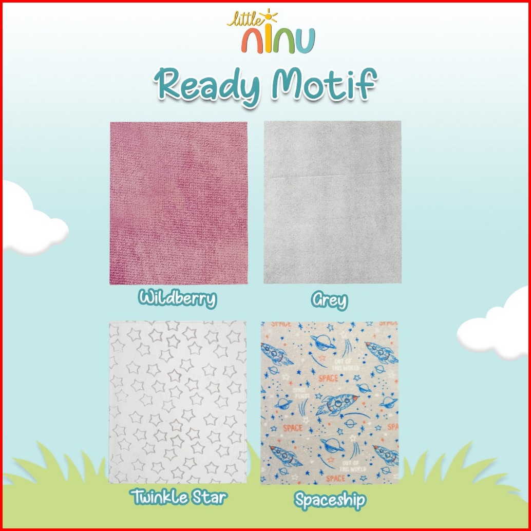 Chibi, Little Village, Rainy Days, Geometri Star, Twinkle Star, Turkish Blue, Baby Blue, Pink Lines, Floral, Peach, Wildberry, Grey, Spaceship, Grey Heart, Puppy Blue, Puppy Grey, Puppy Pink