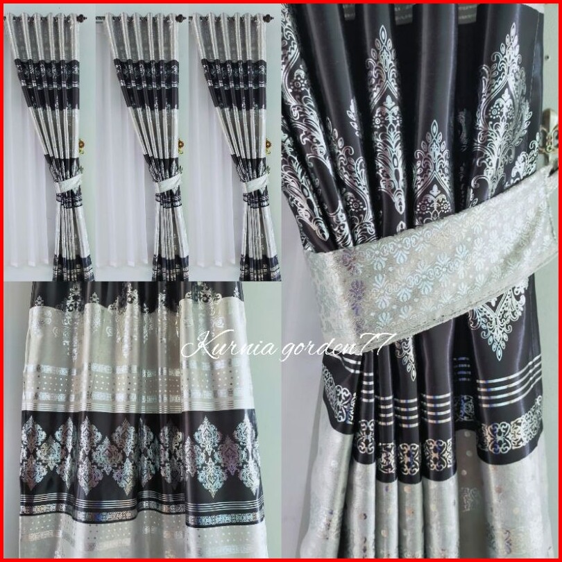 Gorden Jendela Gorden Pintu Gordyn Blackout Motip Printing Black Silper