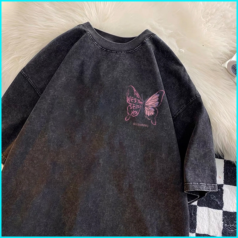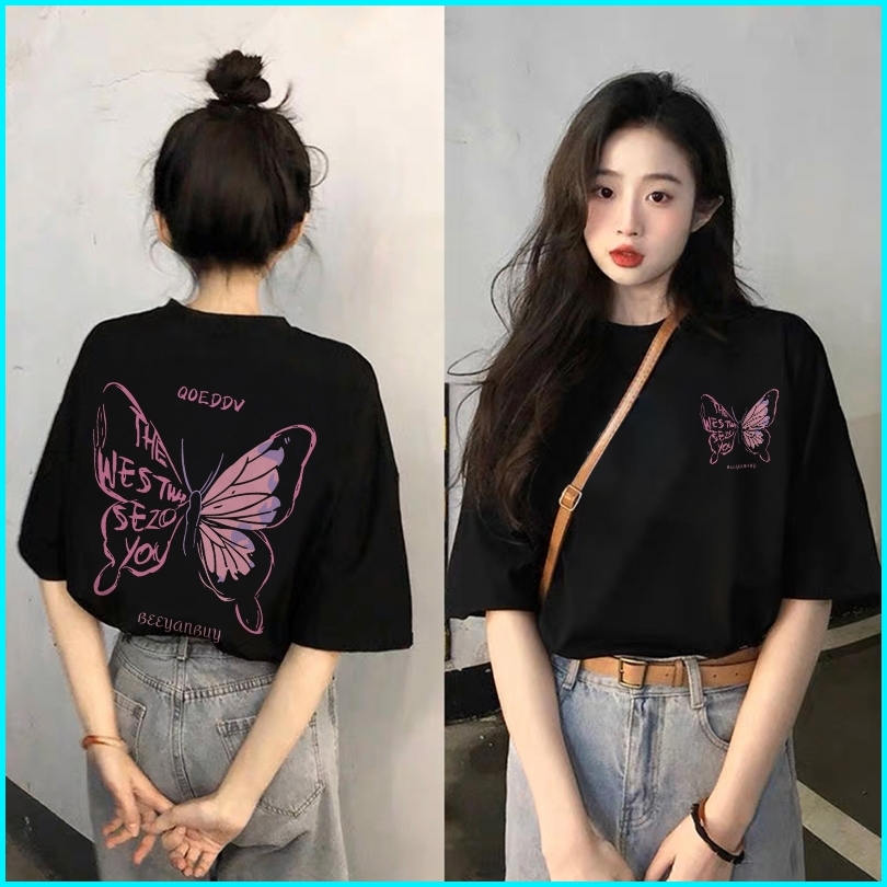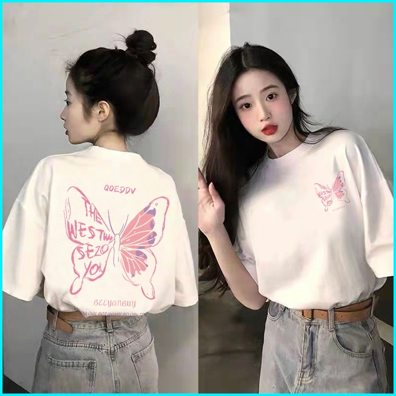 Forteid T-shirt Short Sleeve Baju Kaos Oversize Baju Korean Women S T-shirt Atasan Wanita Terbaru Pola Kupu-kupu Cotton